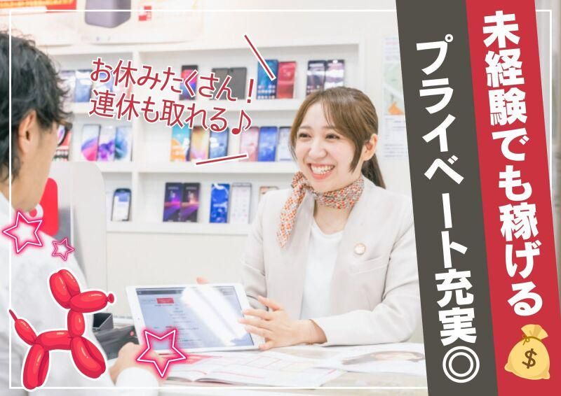対象となる方 | 求めている人材 ■歓迎 ・普通自動車免許(AT限定可)をお持ちの方 ※お持ちでない方もお気軽にご応募ください! □スマホの知識は一切不問! 現在在籍中のスタッフも ほとんどが未経験からスタートしています! 【こんな人におすすめ】 ・人と話すことが好き ・正社員を目指している ・稼げる仕事がしたい ・歴史ある会社で安定して働きたい ・仕事も家庭も大事にして働きたい |