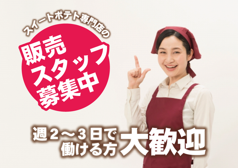 対象となる方 | 求めている人材 明るく笑顔で人と話すのが好きな方 20~50代の男女が活躍中 / 学生さん(高校生を除く)、主婦・主夫さん、フリーターの方大歓迎 / 副業OK ★仕事内容、シフト、勤務開始日など気になることはお気軽にご相談ください 【受賞歴】 ・2020年 にっぽんの宝物 圏央道大会(1都4県) スイート部門 グランプリ ・2021年 にっぽんの宝物 全国大会 Visit Japan部門 グランプリ ・2021年 日本経済新聞NIKKEIプラス1全国スイートポテトランキング TOP10入賞 ・2022年 TVメディアにて「ご当地で絶対買って帰りたいお土産ランキング 第1位」とご紹介 |