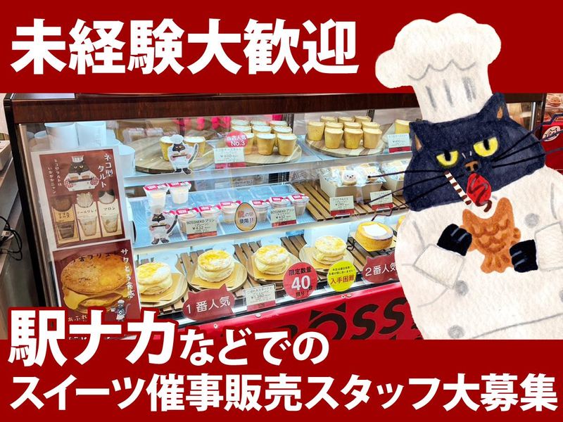 職種/仕事内容 | 仕事内容 ⭐オープニングスタッフ大募集方法⭐ あま~い香りで道行く人を トリコにする"スイーツ催事"! 催事イベントの販売スタッフを大募集! 先輩スタッフやマネージャーの バックアップ体制もバッチリなので 未経験からでも安心して働ける環境です。 - ★アイデアを商品に…! スイーツの新ブランドや新商品の立ち上げなど、 商品企画にもチャレンジできます! スイーツの知識がなくても大丈夫! 「こんな見た目のスイーツを作りたい」 「こんなコンセプトのブランドを立ち上げたい」 そんな希望があれば、 実現に向けて挑戦できる環境があります! 自社パティシエや工場を抱えているので 試作など自由にアイデアを形にすることが可能です! <こんなこともできます!> ・商品パッケージ ・販促物 ・ショーケース ・スイーツ本体 ・パッケージのデザイン さらに、材料・味、素材や触感、見た目など、 全てにわたってデザインできます! - ★こんなブランドのスイーツを販売予定 マックスイーツ、シューザック、さつまいも本舗、 ボスネコなどの自社ブランドのスイーツを取り扱います! ★こんなスイーツを販売予定 プリンやチーズケーキはもちろん、 タルト、フィナンシェ、シュークリームなど幅広いです! - ★もっと働きやすい環境づくりをドンドンしていきます! 利益はみんなに還元していきたいと思っています。 「こんな風になったらいいな」等 アイデアがあれば是非聞かせてください。 - ★スタッフにインタビュー お買い上げいただいた後、 ただ「ありがとうございます」で終わるのでなく、 「こういう切り方がオススメです!」 「このスイーツには紅茶よりコーヒーが合いますよ」 などの一言をかけることで、 プラスアルファの価値をお返しできるようにしています。 一度に販売する商品数も少なめなので、 説明などもしやすいです! - <勤務地について> 催事エリア:東京都内中心 催事会場:駅ナカ、百貨店、商業施設、イオンモールなど 催事期間:基本は3、4日~、長くて2週間 ★会場はすべて公共交通機関で行ける範囲で安心(免許不要!) ★可能な方は、全国各地への 出張もお願いします!(別途手当有) 数か月など長期出張はないので 旅行気分を味わえます♪ |
