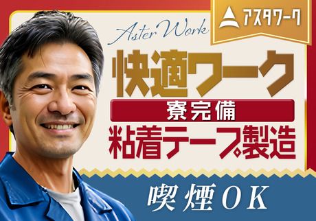 職種/仕事内容 | 仕事内容 粘着テープを製造する会社でのお仕事です。 ロールになったテープのもとを コロコロ転がして台車に載せます。 台車に載せたロールを機械まで運んでいきます。 またコロコロ転がして機械にセットします。 カットするサイズが書かれた紙があるので サイズをポチポチ押して入力します。 そうすると機械がカットしてくれます。 カットされたテープを隣に置いていきます。 空調がしっかり効いているの快適に作業できます。 少し動きのある作業なので、夏場は少し暑さを感じますが 汗をダラダラかいて作業するという事はありません。 休憩スペースには自販機が設置されています。 机とイスも用意されているのでゆったり休憩することができます。 お弁当の注文ができ食堂で食べられます! もちろんお弁当の持参もOK! 喫煙ルームも敷地内に3カ所あるので 愛煙家の方も安心して就業できます。 \電話応募受付中です/ 0120-99-7767 (通話無料)[電話受付時間:9時~18時] 経験豊富な女性スタッフが、あなたの不安や 疑問に丁寧にお答えします。 18時~翌8:59までは自動応答にて受付中! 翌営業日に順次ご連絡させていただきます。 0532-69-5269 よりご連絡致します。 アスタリスクではすぐに新生活をスタートできるようにご用意してます! 全てのお部屋に生活家電付き! ・冷蔵庫、エアコン、洗濯機、電子レンジ テレビ、カーテン等 生活に必要な家電は一式完備してます! 当日からスグに新生活がスタートできます! ※敷金礼金や仲介手数料などの 初期費用も不要です! 面倒な手続きも必要ありません◎ 布団も有料ですがご用意できます! 新品 6千円 中古 5千円 うれしい土日休み!長期連休もしっかりあるので帰省や旅行もゆったりプランでOK! ※うれしい土日休み※ ・お友達と休日が合う! ・週末にパーっと飲みにいける! ※長期連休には※ 「海外旅行に行ける!」 「神社仏閣めぐりたい!」 「一人でのんびりソロキャンプ」 「のんびり帰省したい!」 ・リフレッシュできて、仕事にもやる気が生まれる! などなど、メリットがたくさん♪ アスタリスクはあなたの「働く」を全力でサポートします!私たちと一緒に、新しい一歩を踏み出しませんか? 新しい職場でのスタートは、誰でも不安ですよね。 だからこそ、私たちはあなたのそばに寄り添い、 全力でサポートします。 入社初日は、担当者が同行するので心強いはずです! 定期的な訪問はもちろん、困った事があればすぐに 駆け付けます。仕事のことからプライベートなこと まで、どんな小さなことでも遠慮なくご相談ください。 季節ごとのサポートもお任せください! 夏は暑さ対策塩飴やスポーツドリンク 冬は、心も体も温まるホッカイロや 温かいコーヒーなどを持って会いに行くことも。 体調が優れない時などは栄養ドリンクを差し入れする こともあります! 少しでもあなたの力になれることがあれば、 全力でサポートします! |
