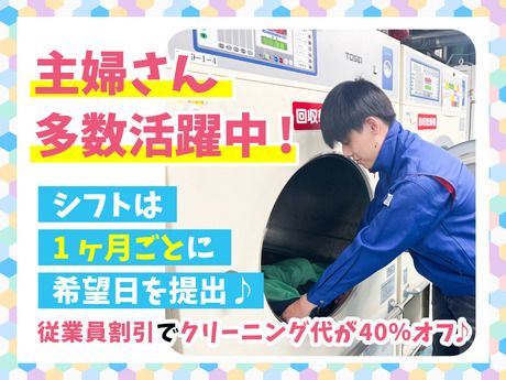職種/仕事内容 | 仕事内容 アピールポイント♪ ■ほぼ全自動の機械で覚えること少なめ! ■モクモクとできる軽作業 ■未経験でも高時給1300円~ ■近隣の駅に当社専用の 無料貸出し自転車があるので、 通勤も楽ちん♪ ■普段のクリーニング代が 40%OFFになる従業員割引制度あり♪ ■シフトは1ヶ月ごとに希望日を提出♪ ■広大な工場ではないので、 動き回ることもなし!! 【ほぼ全自動の機械×覚える事少なめ】 洋服のクリーニング工程に必要な *クリーニング前の検品 *店舗ごとに棚に並べる *アイロン掛け …などの作業 【定着率高め!居心地◎】 現スタッフには10年以上勤務する方も! 黙々とこなせる仕事内容と、 働きやすい環境に居心地がイイ…♪と評判◎ 長く働いていただけます* 和気あいあい♪働きやすい環境 楽しく働ける工夫がたくさん! 工場内ではBGMが流れていたり(選曲希望可) 新人さんには仕事内容はもちろん、お手洗いの場所や 休憩室の案内なども…慣れるまで丁寧にサポートします☆ 気さくで親切なスタッフ多数★ お友達と一緒のご応募なども大歓迎。 ライフスタイルに合わせて、働き方も調整できます。 楽々通勤可能♪ JR「立花」駅と阪急「武庫之荘」駅から 当社専用の無料貸し出し自転車を ご用意しているので、楽々通勤可能♪ 自転車で5分程度の距離です!! 工場の近くにはスーパーマーケットもあり、 帰りに買い物などもできます!! 従業員割引でクリーニング代が40%オフ クリーニング代が40%オフで利用可能です。 衣替えの時期は、節約になります♪ コートやニットなど、お得に安くキレイに クリーニングできちゃいます♪ 【職場の雰囲気がわかる動画も公開中!】 お子さんが小さい方も、ベテランさんも、幅広く活躍中 「衣類をキレイにする仕事」で、 キレイな衣類を見ると気持ちがスッキリします☆ もう落ちないと思っていた汚れが落ちている達成感も嬉しい♪ あなたの裏方の仕事が、誰かの笑顔をつくっています♪ 初日は業務内容の説明はもちろん、 まずはお手洗いの場所や休憩室をご案内します! ゼロから丁寧に説明&サポートします◎ ※02 |