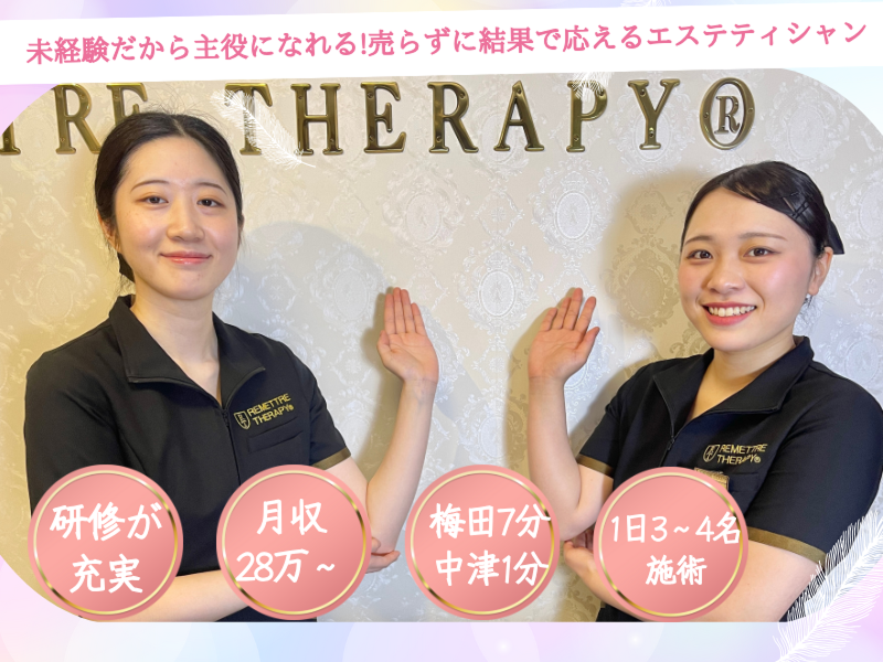 職種/仕事内容 | 仕事内容: 【私たちが提供するのは 単なる『エステ技術』ではなく、『人生を輝かせるための約束』です。】 エステ業界にある『結果が出ないかもしれない』『騙されたらどうしよう』という不安を無くしたい――。 私たちは、それを変えたいと思いました。 だからこそ、**“結果に本気で向き合うエステ”**を追求し、 国内でわずか3社のみが認定されている【結果保証制度】を導入する痩身専門サロンをつくりました。 お客様一人ひとりと誠実に向き合い、 本当に求めている「変わりたい」という想いに応えられる技術と仕組み。 その環境があるからこそ、未経験の方でも、美容の仕事で“誰かの人生を支える喜び”を感じながら働けるのです。 私たちはこれからも、**「人を輝かせる技術」と「誠実な仕組み」**を磨き続けていきます。 “人の人生を豊かにしながら、自分の人生も輝かせたい” そんな想いを持ったあなたとの出会いを、心からお待ちしています。 |