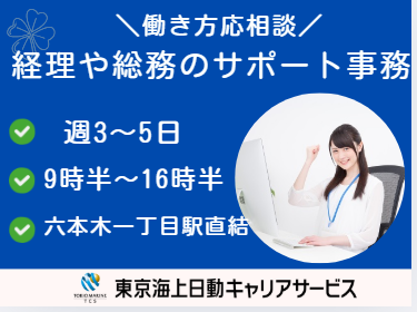 職種/仕事内容 | 仕事の内容 \風通し◎オープンな環境/ ◆大手金融Grベンチャー企業 ◆簿記資格は不問!経理ご経験者の募集 ◆週4時短*働き方応相談 【基本情報】 雇用形態:派遣社員 雇用期間:長期(3カ月以上) └26年1月~開始日相談可能 就業時間:9:30~16:30(休憩60分) └週3~5日の中でコアタイム10時~15時を網羅されていれば勤務時間の相談OK! 【必須条件】 ◆経理事務のご経験がある方(年数問わず) ◆パソコン:エクセル基本操作(入力~SUM関数) 【お仕事内容】 部内サポート事務 ・経理:請求書受領確認~会計freeeでの仕訳登録、請求書発行 ・総務:電話対応、会議室予約、郵便物対応、名刺発注、契約書管理、会議運営サポ ・人事:勤怠管理など ◆ベンチャーならではのフラットな雰囲気◎ ・コミュスキ発揮 ・部署や役職を越えて意見交換しやすい! ・スピード感を持ちながらフレキシブルに活躍 【環境面等】 ・@六本木一丁目駅直結タワー内!ビル内は話題のグルメが沢山○ ・20代・30代・40代の多い職場 └幅広い年代活躍中 └わからないことは質問、確認をしながらオシゴトできる環境です └お弁当持参OKです ・オフィスカジュアル内で服装自由 【福利厚生等】 ・社会保険完備 ・ベネフィット・ステーション ・定期健康診断あり ・禁煙オフィス!煙苦手な方も安心 ・平日のみOK!土日祝休み ・年間休日120日以上&お休み相談可 └有給休暇 ○●ご応募検討中の方へ●○ ・勤務日数も時間もムリなく調整できるから、家庭やプライベートとの両立も◎経理のご経験を活かして、もう一度“自分らしい働き方”を始めてみませんか?少しでも気になった方は、ぜひお気軽にご応募ください♪ ○●嬉しいPOINTたくさん!●○ 履歴書不要!開始日相談/長期/駅直結/駅チカ/駅歩5分以内/経理のご経験浅い方やブランクOK!/社会保険完備/残業なし!定時退社OK/6時間以内勤務@1650円/週3日~週4日~OK!時間・曜日応相談 |