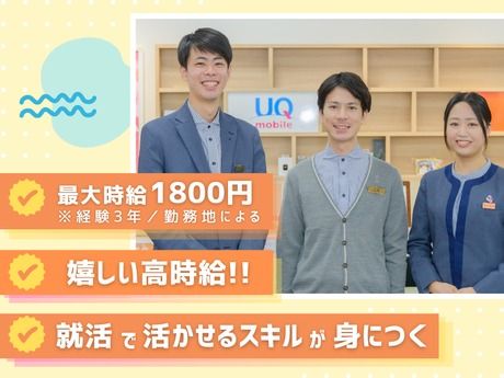 職種/仕事内容 | 仕事内容 【たくさんのオススメポイント】 ・高時給1500円からスタート! せっかく働いてくれているスタッフに還元したいため去年時給UP! ・授業やサークルとの両立OK! ・就活のアドバイスが聞ける職場! ・安定安心の上場企業グループ! ・接客・ご提案など就活に身につくスキルがたくさん身につく! ・アルバイトから新卒入社するスタッフさんもいます! auショップで働こう! auショップでのスマホやインターネット等、サービスの販売や 契約業務・料金プランの見直しをお願いします。 イベントの企画運営やディスプレイ作りなど auの販売員として働くことで幅広い対応力が身に付く! 先輩がマンツーマンでサポートするのでご安心ください。 多くの仲間と出会える職場 自分とは違う大学・短大・専門学校などこれまで出会うことのなかった仲間にも出会えます! 視野も広がって新しい考え方に触れられるメリットも♪ また、同年代だからこそ仕事の悩みも話しやすいので、一生モノの「バイト仲間」が出来るのも嬉しいですよ! 未経験大歓迎! 人と話すことが好きであれば販売接客経験は必要ナシ! はじめはトレーナーの先輩とペアで研修を行います。 周りには頼れるスタッフがたくさん!困ったことがあってもすぐにサポートできる環境なので、ご安心くださいね。 幅広い年齢層の方への応対力が身につきますよ! 高時給×シフト融通◎ 嬉しい高時給1500円!しっかり稼げます。 ■週3日プライベートとしっかり両立したい! 月収8万4000円=平日3時間×週2日+8時間×土or日週1日 家庭の用事、学校の都合など曜日や時間はご相談ください。 |