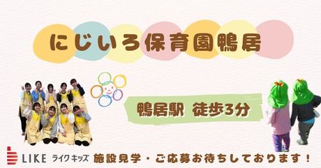 職種/仕事内容 | 仕事内容 保育士資格を活かせる認可保育園”にじいろ保育園”の特徴 ◆ヒノキの温もり溢れる家具や手作りおもちゃに囲まれた、アットホームな保育環境 ◆食育や自然体験、絵本との出会いを大切にした、豊かな感性を育む保育 ◆60~80名程度の中規模園が中心で、ゆとりある保育を実現 ◆借上げ社宅制度あり(敷金礼金なし・家賃1万円) ◆平均残業時間:8.8時間/月、持ち帰り保育もなし! ◆年間休日123日・有給取得率73%でプライベート充実! 仕事内容 認可保育園での保育のお仕事をお任せいたします。 ”あたたかい空間「いえ」が人を育てる”を合言葉に、 主体性をはぐくむコーナー保育などを取り入れた、 「こどもたち一人ひとりに寄り添う」保育を行っています。 風通しの良い職場で、 あなたのいままでの経験を反映して より良い保育をしたい方にピッタリなお仕事です! 充実の休日ライフを楽しめる♪笑顔もスキルも活かせる職場! 休日を大切にするあなたにピッタリの職場です◎ 年間休日123日の充実スケジュールで働きやすさ抜群! 土曜はシフト勤務で、出勤時は平日に振替休あり☆ 月の平均残業時間も8.8時間でもちろん持ち帰り保育もなし! 有給取得率73%で自分の時間もしっかり取れます。 結婚時には特別休暇5日も取得可能! さらに、介護や育児休暇もバッチリサポート♪ 一緒に働く仲間が魅力!笑顔が活きる保育環境でスキルを活かそう♪ 笑顔あふれるチームで一緒に働こう! ライクキッズでは、スタッフ同士が和気あいあいと 協力して保育に取り組んでいます。 スタッフ同士のコミュニケーションも活発で、楽しく働けます。 あなたの笑顔が子どもたちにも届き、共に成長できる職場です! また各園にはエリアごとに担当のスーパーバイザーがついており、 定期的に園を訪問して、サポートできる体制があります! 【園長からのメッセージ】 にじいろ保育園鴨居は、横浜線鴨居駅1分と好立地にあり、「のびやかに育てだいちの芽」を理念に、こどもたちの豊かな育ちをめざしています。 ●施設環境 ・園は明るい陽射しの差し込む窓、木のぬくもりのある保育室、豊かな自然という恵まれた環境にあります。 ・近隣農家さんの畑で毎年、収穫体験をしています ●人間関係 ・職員の話を聴き、心に抱えた不安や不満をさりげなく話せるような関係づくりをしております。 ・一人ひとりの色を大切にしながらのびのびとこどもたちに保育生活を楽しんでほしいと考えています。 楽しい園での体験や経験が、地域の方々との交流を通して「生きていく力」を身に付けていけるよう関わっていきたいと思っています。 仕事は時に忙しく、時に苦しいときもありますが、こどもたちの笑顔と職員同士の思いやりと助け合いでカバーし合いながら保育を頑張っています。 ー 【神奈川配属 モデル年収】 └経験5年・職務別リーダー 年収342万円 └経験7年・主任 年収430万円* └経験10年・園長 年収489万円* ※配属先により変動の可能性あり ※別途、残業代支給 (*上記年収に固定残業代が含まれています。残業時間が支給分を上回った場合には別途残業代を支給いたします) ー |