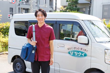 職種/仕事内容 | 仕事内容 ◆仕事内容 訪問看護の看護職員として、お客さまの健康状態の確認・相談・助言、日常生活の援助、医療処置、医療機器の管理、看護内容の計画書、報告書の作成などをお願いします。 ご自宅を訪問して看護ケアを提供することで、自立への援助、療養生活を支援するお仕事です。 コミュニケーションが得意な方を歓迎します。 子育てと両立しやすい職場 ツクイでは子育て応援制度を設けており、育児休業期間を最長で2年間取得できるため、家庭とも無理なく両立しながら働ける職場です。 女性の育休取得率は95%以上の実績があり、ライフイベントで生活に変化があっても長く続けやすいのが魅力。 腰を据えて長く働きたいという方、まずはお気軽にご応募ください。 ライフステージと働き方 ツクイの企業理念の1つは「人生100年幸福に生きる時代を創る」です。 スタッフのライフステージに合わせ子育て世代だけでなく、アクティブシニア世代になっても経験や生活環境に応じて活躍できる体制を整えています! パート⇒正社員⇒定年退職後にパートスタッフとして活躍中の方もいます! 研修・サポート充実で安心 ◎入社研修3日間:マナー接遇研修・訪問看護研修・営業研修◎OJT研修:営業同行OJT・先輩社員OJT研修◎フォローアップ研修その他、テーマ別研修・階層別研修・オンライン講座・自己啓発支援制度もなど、充実しています! |