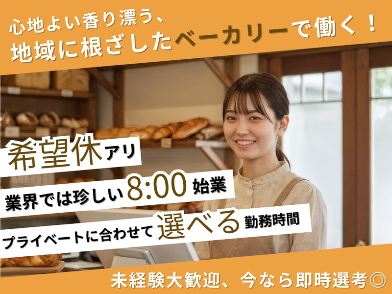 職種/仕事内容 | 仕事内容 ■この求人の5つのポイント! ①業界でも珍しい「朝8時始業」 他のパン屋さんでは深夜や早朝勤務が多い中、 当店はゆとりあるスタートで続けやすい環境です。 ②働き方を選べる+週ごとのシフト提出 月173h~218hでコース選択可。 シフト週単位提出、希望休ありでプライベートのご予定にも柔軟に対応可能です! ③パンの新商品開発に参加でき、全国展開も実現 他社様では、本部で開発した商品を現場に卸すことが多いですが、 弊社ではパンの製造メンバーやアルバイトメンバーも含め、みんなで店舗ごとに新商品開発を行います! ④地域に愛されるお店で、接客の喜びを実感できる 常連さんとの会話や地域密着型のイベント企画など、"人とのつながり"がやりがいに。 ⑤「社員は家族」─代表の想いが息づく社風 創業32年続く、人を想う文化が制度にも浸透。 制度も人間関係もあたかかく、長く安心して働ける職場環境です! ー ■業務内容 販売スタッフとして、以下の業務を担当していただきます。 ・パンの品出し、陳列、袋詰め ・レジ業務(接客・会計対応) ・ドリンクの製造、提供 ・店舗の清掃、整備 など パンに囲まれた空間で、お客様の「おいしい」「ありがとう」を一番近くで感じられるお仕事です。 スタッフ同士もチームで連携しながら、楽しんで働いています! ー ■業務の魅力(地域とのつながり) ・「子どもの頃から通ってるよ」と声をかけてくれる常連のお客様が多数 ・母の日、バレンタイン、クリスマスなどの季節イベントでは限定パンの販売や飾り付けも ・地域のお祭りやフェアにも積極的に参加! ・イートインスペースでは、お客様の憩いの場づくりにも一役買っています! "ただ販売する"だけでなく、パンを通して地域とつながる喜びを感じられる環境です。 ー ■働き方(始業時間・シフト制度) ①目指すキャリア、生活スタイルに応じて勤務コースが選べます。 フルコース:月218h勤務の場合、見做し残業45h バランスコース:月200h勤務の場合、見做し残業27h ライフワークコース:月173h勤務の場合、見做し残業0h ②週ごとのシフト提出制 ライフスタイルに合わせて、週単位でシフト提出ができ、希望休も取得いただけます! 飲食業界平均のシフト提出スパンは「月1回」が一般的で、なんと週単位は全体のわずか9%になります。 (厚労省:令和5年版雇用動向調査) ー 【実際に働くスタッフの声】 https://youtu.be/i0VTqH-Lyzk?si=v9iTpHNmPWGnPoZt ※働き方や店舗の雰囲気が伝わるかと思いますので、コピー、ペーストでご視聴ください! |