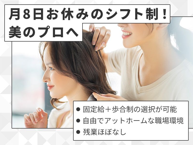職種/仕事内容 | 仕事内容 ⋈・。・。⋈・。・。⋈・。・。⋈ 働きやすい職場で お客様の理想をカタチにしよう! ⋈・。・。⋈・。・。⋈・。・。⋈ ✅アットホームで風通しの良い環境 ✅週休2日制の安定したお休み ✅ほぼ残業なし!ゆとりを持って働ける ✅キャリアアップに挑戦可能! ┈┈┈┈┈┈┈┈┈┈ +:-:+ 仕事内容 +:-:+ ┈┈┈┈┈┈┈┈┈┈ 「カット」と「カラー」をメインに、 スタイリスト業務全般をお任せします。 デザインカラーが得意な美容院なので ブリーチカラーの経験を積めます! また、トリートメントや髪質改善は 水素系を使用しておりさまざまなスキルが 身につけられます! ▽POINT *個人の希望を尊重! ー特殊カラーやブリーチ など *女性と男性の割合は7:3 *40~50代メイン *1人当たりの単価が高め! |