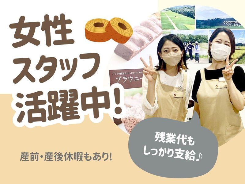 職種/仕事内容 | 仕事内容 ★―・―・―・―・―・―・―★ メディアでも話題! 店舗続々と拡大中! 米粉バウムクーヘンの人気店 ★―・―・―・―・―・―・―★ 自家製米・自家製粉による 挽きたての「生米粉」を使用した バウムクーヘンの人気店で 販売・カフェスタッフの募集です。 ―――――――――――――――――・ ■ 経営理念 ―――――――――――――――――・ 「ココでトモダチになろう」 「株式会社ココトモファーム」は 愛知県犬山市にある米農家です。 犬山城主にも献上されていた犬山のお米を、 自然豊かな田んぼで、ていねいに育てています。 その犬山のお米の美味しさと新しい感動を伝えたい… そんな想いからココトモバウムが誕生しました 私たちが目指すのは、 農業を基点に雇用を生み、 犬山のモデルを全国に広めていくこと。 農業と福祉と商業を連携させ、 生産から販売までの 一貫したものづくりを通して、 一人ひとりが自分の存在意義を感じながら 頑張れる場所を目指しています! ―――――――――――――――――・ ■ 人気のバウムクーヘン ―――――――――――――――――・ 自家製米・自家製粉を使った グルテンフリーのバウムクーヘンは アレルギーのある方も 安心して食べることができると 大変喜ばれており 多い日は1日3000点以上を販売します。 ―――――――――――――――――・ ■ メディアでも話題 ―――――――――――――――――・ 現在は犬山に9店舗、 西尾市3店舗、 名古屋市3店舗、 豊山町1店舗。 愛知県だけでなく 山梨県、兵庫県神戸市にも 店舗を拡大しています。 ※FC(フランチャイズ) 展開をしていますので 県外への転勤はありません! 犬山城下町にある店舗をはじめ TVや新聞などのメディアで 度々取り上げられるほどの 大人気店です! おかげさまで業績は好調、 次々と新店舗をオープンしています。 ―――――――――――――――――・ ■ 仕事内容 ―――――――――――――――――・ 『ココトモファーム』各店での バウムクーヘン販売スタッフ・ スイーツカフェスタッフ ―――――――――――――――――・ ■ 具体的な仕事内容 ―――――――――――――――――・ ●店舗内での接客 ●レジなどの会計作業 ●ドリンク、デザートの提供 など ―――――――――――――――――・ ■ 成長・挑戦できる環境 ―――――――――――――――――・ 店長へのステップアップや、 複数店舗のマネジメントをする エリアマネジャーの道も。 今後は福祉施設や観光農園まで 幅広い施設を開所する予定なので、 新たな職種へのチャレンジも可能です! ―――――――――――――――――・ ■ 勤務地 ―――――――――――――――――・ 以下の勤務地のいずれかに 配属予定となります。 ●ココトモファーム犬山城下町プラザ …犬山市字犬山字東古券76 …営業時間/10:00~17:00 ●ココトモファーム犬山城三之丸店 …愛知県犬山市北古券69番地2 …営業時間/10:00~18:00 ●ココトモファーム犬山梅坪店 …愛知県犬山市梅坪2丁目114番地 …営業時間/10:00~19:00 ●ココトモベリー犬山店 …愛知県犬山市大字犬山富士見町14 名鉄犬山駅2階 …営業時間/10:00~19:00 ●ココトモカフェフロイデ店 …犬山市松本町四丁目21番地 犬山市民交流センターB1 …営業時間/10:00~18:00 ●ココトモ茶屋犬山梅坪店 …愛知県犬山市梅坪2丁目114番地 …営業時間/10:00~18:00 ●ココトモ茶屋犬山城下町店 …愛知県犬山市大字犬山字北古券甲98-1 …営業時間/10:00~19:00 ―――――――――――――――――・ ■ 事業拡大に伴う増員募集 ―――――――――――――――――・ 自社で育てたお米を使った バウムクーヘンが人気の ココトモファーム。 IT企業経営や 障がい福祉施設の運営も行う社長が 2019年に設立した農業法人です。 農家の高齢化や担い手不足、 障がい者の受け入れ先が まだまだ少ない事など、 各業界の抱える課題を解決するため、 『6次産業化』で農業を起点にした 雇用を創る活動を広げることを 目標にしています。 ―――――――――――――――――・ ■ あたたかく楽しく働ける社風 ―――――――――――――――――・ 私たちが扱うのは、その昔、 犬山城主にも献上されていた 犬山のお米を使った商品。 ただお店で売るだけではなく、 栽培から品質管理・設備管理にはじまり、 加工や販売に至るまで、 どんな想いで作られた商品かを知るために 自社農園や工房を見学することから 始めていきます。 また、農業体験イベントや マルシェを開催し、 地元の人や障害施設の人と 交流できる機会も。 農業・製造・福祉、 幅広い業界の人たちと関わりながら、 新しいブランドや サービスを作っていきたい! そんな方と一緒にワクワクしながら 働けたらと思っています。 ぜひ、あなたの経験を活かしながら、 農業と福祉と商業を掛け合わせて、 地域を盛り上げるお仕事を していきませんか? |