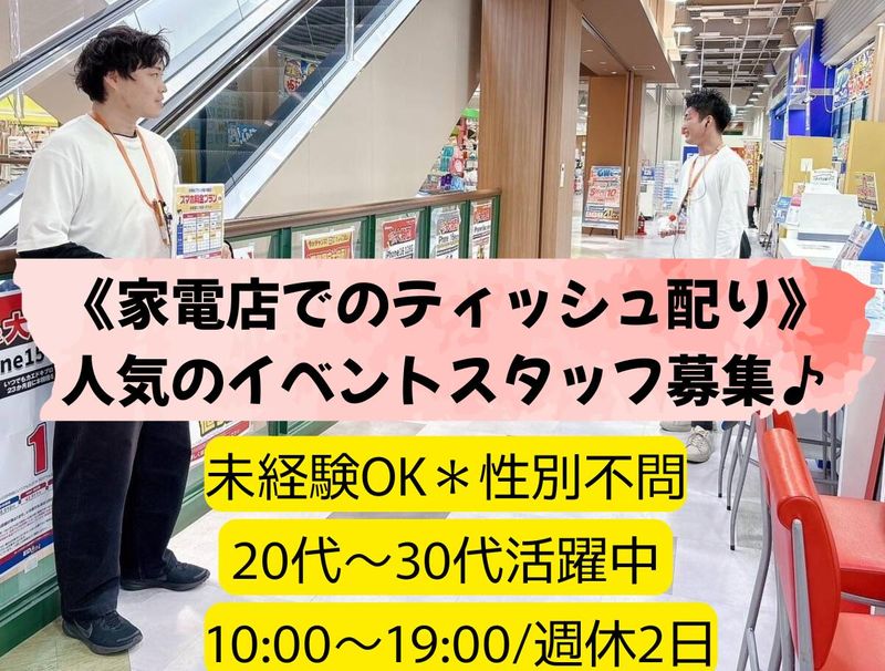 職種/仕事内容 | 仕事内容 まずは家電量販店等の特設ブースにてポケットティッシュ配りの役割をお願いします。 20,30代中心のアットホームな職場です♪ 慣れてきたら… ✅商品のプレゼント受け渡し ✅反響営業での料金案内 などをしていただきます。 その他付随する業務 【給与】 月収300,000円~500,000円 賞与有り(年2回) 交通費全額支給 .試用期間あり:6ヶ月 (条件変更あり) OJT期間:20万円~ 【勤務時間・曜日】 10:00~19:00(休憩60分) ※残業なし 【休暇・休日】 週休2日制 希望休もok!! 【勤務地】 愛知県名古屋市中村区 月末締め/翌月末払い \2名のみの募集となります/ 人員埋まり次第、募集終了予定。 |