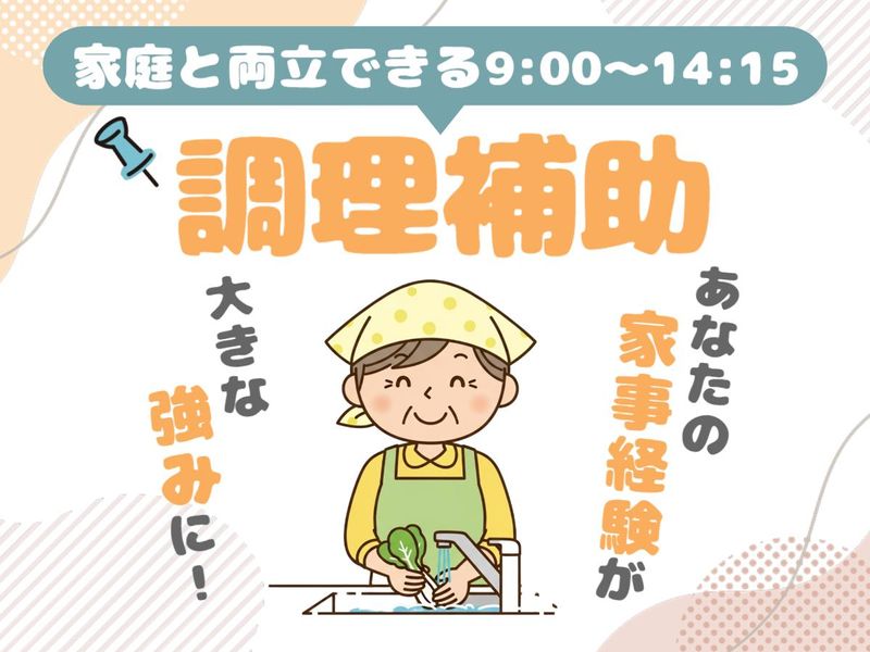 職種/仕事内容 | 仕事内容 ▼▼ 主婦(夫)さん大歓迎 ▼▼ = 調理サポートスタッフ = 『午前中の時間を有効活用したい!』 『家事や育児と両立しながら働きたい!』 そんなあなたにぴったり◎ お任せするのは、 専門知識は不要なシンプルな作業です♪ ■お仕事内容  ̄ ̄ ̄ ̄ ̄ ̄ \コツコツモクモクシンプル作業/ 【1】盛り付け 完成した料理を、見本を見ながら お皿に並べていく作業です! きれいに盛り付けてくださいね♪ 【2】食器の洗浄・片付け 食洗機をメインで使用するので、 手荒れの心配もありません。 洗い終わった食器の片付けもお願いします。 ※包丁や火を使う作業は一切ありません! ■勤務時間  ̄ ̄ ̄ ̄ ̄ ̄ \家庭とも両立しやすい/ 【9:00~14:45】 夕方の家事や、お子さんの送り迎えにも 間に合う時間帯です♪ 学校行事など、家庭の都合に合わせて シフトの調整もできますので、 まずはお気軽にご相談ください。 週3日~勤務OKですが、 365日、お仕事は毎日ありますので、 たくさん働きたい方にもおすすめです! ■嬉しいポイント  ̄ ̄ ̄ ̄ ̄ ̄ ̄ ̄ ✨まかない付き バランスの取れた食事が、 お得に食べられます♪ ✨賞与あり アルバイトでもうれしい賞与あり! 家計の足しにもなりますよ♪ 主婦さんも多く活躍しております! 家庭と両立しながら、 無理なくお仕事を続けたい方は ぜひご応募ください♪ みなさまからのご応募を 心よりお待ちしています。 |