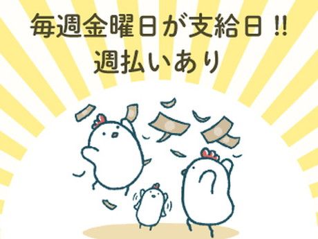 職種/仕事内容 | 仕事内容 パワーキャスト限定特典あり☆ミ \5万円もらえる!/ ハッピーリターン制度! 「もう一度パワーキャストで働きませんか?」 再スタートで 【 50,000円 】どどーんとプレゼント!※規定あり 就業歴の確認や詳細のお問い合わせはお気軽に♪ あなたのおかえりをお待ちしております! お仕事内容☆ミ 冷凍食品などを製造しています! 検品・梱包・シール貼りなどの軽作業★ 難しい作業なし♪未経験でもすぐに活躍できる◎ 週2か週3◎都合に合わせて希望曜日が選べる★ 完全土日祝休み♪扶養内勤務でお小遣い稼ぎにも最適!! 雰囲気が良く、アットホームな職場で働きやすい★ おすすめポイント☆ミ ◆未経験大歓迎 ◆平日のみ ◆勤務日数が選べる ◆駅から徒歩5分 ◆バイク/自転車通勤OK ◆重量物なし ◆空調完備 ◆作業服無償貸与 パワーキャストは一人ひとりに寄り添う派遣会社☆ミ 事前に職場見学ができるので勤務のイメージがつきやすい♪ 職場見学はもちろん入社初日も担当スタッフが付き添います! 勤務開始後も担当スタッフが定期的にお伺いするので 困りごとなど相談がしやすい(^o^)/!! 実際に勤務していただいているスタッフさんからもよく ”連絡が繋がりやすい”や”人が良い”とお褒めの言葉をいただきます♪ それは私たち全員がスタッフファーストを第一に考えているので それが皆さまに伝わっているからかと思っています。 パワーキャストと共に新しいスタートを切りませんか☆ミ |