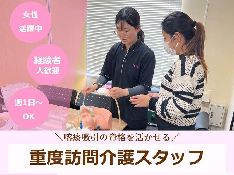 職種/仕事内容 | 仕事内容 ★20代・30代活躍中! ★女性スタッフ活躍中! ✅当社のポイント ・担当のお客様は固定で、直行直帰OK ・1勤務あたり3.3万円程稼げる ・20代女性スタッフが活躍中 ・週1日~勤務OK、副業もOK ✅仕事内容詳細 ご自身で体を動かすことが出来ないなどの 重度障がいをお持ちの利用者様を対象に 訪問介護サービスを行います。 <業務例> ・喀痰(かくたん)吸引:要資格 ・食事介助:水分補給等 ・排泄介助 ・バイタルチェック ・その他生活介助、等 ※訪問介護は利用者様と1対1が基本です。 ※利用者様のご希望や状況により異なります。 ※1日の報告はスマホで介護用ソフトに入力。 ✅入社後の流れ 喀痰吸引や利用者様の「移乗」の仕方等、しっかり事前研修を行うので安心してください。 事前研修後、先輩に同行しながら業務の流れを把握します。まずは医療ケアが必要ではない方の介護といった、はじめやすい業務からスタート。 先輩の業務を見て、次は先輩に見守られながら自分がやってみてといった感じで経験を積み、先輩が「一人でも大丈夫」と判断すれば単独での訪問介護をはじめます。 ✅みんなでサポートします もちろん中にはコミュニケーションを 取りづらい利用者様もいらっしゃいます。 人間同士なので利用者様と介護者の相性もあります。 困った時は随時、管理者や先輩がサポートします。 一人じゃありません。みんなであなたをサポートします。 20代・30代の女性が中心に活躍中! 穏やかで楽しい仲間ばかりです。 何でもどんどん相談してくださいね。 ✅スタッフの声 ★Kさん ご家族と同居されている 利用者様が多いです。 夜中も介護されていたご家族から 「あなたが来てくれたおかげで、 ゆっくり寝られるようになりました。 本当にありがとう」 と感謝されることが多いです。 利用者様だけではなく、 ご家族にも安心を提供できている と思うと嬉しいですね。 |