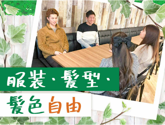 待遇・福利厚生 | 【保険制度】 雇用保険、労災保険、健康保険、厚生年金 【福利厚生】 待遇・福利厚生 【福利厚生】 ◆交通費規定支給(1万5000円迄)、 ◆正社員登用有 ◆服装・髪型・髪色・ひげ・ピアス・ネイル自由 |