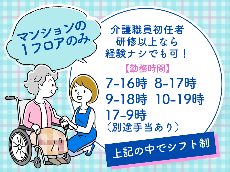 職種/仕事内容 | 仕事内容 \介護職員初任者研修以上の方/ ✅週1日・2時間から勤務OK◎ 残業ほとんどなし! ✅担当するのは1フロアだけ! 同性配慮もできる限りございます。 ✅夜勤は別途手当支給♪ 日勤専属もOK! 住宅型有料老人ホームでの 介護福祉士を募集します! 1フロア専属なので移動少なめ♪ ✨具体的な業務内容 ‾‾‾‾‾‾‾‾‾‾‾‾‾‾‾‾ ・食事介助 ・排泄介助 ・入浴介助 ┗同性解除になるようできるだけ配慮しています 寝たきりの方や立位のない方の介助はほぼなし ・家事の援助 など 利用者様の生活援助や 身体介護などをお願いします。 ⏩未経験・ブランクOK  ̄ ̄ ̄ ̄ ̄ ̄ ̄ ̄ ̄ ̄ ̄ ̄ ̄ 介護職の経験がない方や 資格を取ったものの活かせていない方や 久しぶりにお仕事したい方も大歓迎! マンションなので、一部屋ずつ 決まった時間にご対応しに行きます◎ (状況により突発的な変動あり) コミュニケーションを一番大事にしているので、 常にフロアにほかのスタッフがいる状況で 勤務していただけます! ✅ナースコールあり ✅急変などの対応フロー完備 ✅訪問看護師と医師との連携あり ⏩実務未経験・ブランク歓迎!  ̄ ̄ ̄ ̄ ̄ ̄ ̄ ̄ ̄‾‾‾‾‾‾‾‾‾ 実務経験がない方や 資格を取ったものの活かせていない方や 社会人デビューも大歓迎! 業務に慣れるまでは ベテラン社員が同行してサポートします◎ イチから丁寧にお教えしますので 久しぶりにお仕事したい方もご安心ください♪ ⏩勤務環境について  ̄ ̄ ̄ ̄ ̄ ̄ ̄ ̄ ̄ ̄ ̄ ̄ ̄ 当事業所は、マンションの1フロアに 利用者様がいらっしゃる 『マンション型訪問事業所』 24床中、現在24床利用していますが 移動はフロア内だけなので バタつくことはほとんどございません。 利用者様のプライベートが守られた空間なので、 お一人お一人のお話に耳を傾けやすく、 しっかりと寄り添える環境です。 ✨スタッフインタビュー ‾‾‾‾‾‾‾‾‾‾‾‾‾‾‾‾‾‾‾ 学校で資格を取ったまま 飲食店で働いていましたが 「せっかくなら資格を活かしたい」と思い、 新しい介護の形だなと感じた当社に応募しました! 1フロアだけを担当するので、 利用者様との信頼関係も構築しやすく お一人お一人の好みや傾向は覚えやすいです。 生活や気持ちの面でしっかり寄り添えることに やりがいを感じます。 日々サポートしていく中で、 「ありがとう」と言っていただけると、 この仕事を選んでよかったと心から思いますね。 (32歳・女性・勤続年数2年半) |