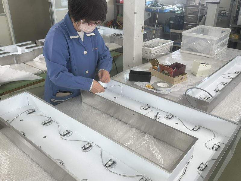 職種/仕事内容 | 仕事内容 ⭐_________________ 未経験でも簡単作業から少しずつ慣れ、 ステップアップ! 20代~40代の女性スタッフさん大活躍中! コツコツ作業が好きな方にオススメですよ。  ̄ ̄ ̄ ̄ ̄ ̄ ̄ ̄ ̄ ̄ ̄ ̄ ̄ ̄ ̄ ̄ ̄⭐ ▶当社について  ̄ ̄ ̄ ̄ ̄ ̄ ̄ ̄ ̄ ̄ ̄ ̄ ̄ ̄ ̄ ̄ ̄ ̄ LED製品の開発・製造を手がけております 多くのパートスタッフが活躍中! ▶お仕事内容  ̄ ̄ ̄ ̄ ̄ ̄ ̄ ̄ ̄ ̄ ̄ ̄ ̄ ̄ ̄ ̄ ̄ ̄ ①金属や樹脂製のサインにLEDモジュールを 貼り付けたり、半田付けをしたりする 軽作業が主な業務となります♪ ②LEDモジュールの製造 ほとんど座って行うお仕事です! 具体的には下記内容です。 最初は貼り付け作業や動作確認など、 簡単な作業からお任せするので、 未経験でも安心してスタートできます! ①LEDモジュールの貼付け半田付け - ✅LEDモジュールの貼り付け 顧客から提出された原寸サイズの紙原稿を切り取り、 穴を空け、金属や樹脂サインの指定された位置に マーキングをしてLEDモジュールを配置 両面テープや接着剤を使って固定 配線の取り回しを考慮して、見栄えや安全性を確保 ✅半田付け作業 LEDモジュールのリード線同士を図面を見ながら 半田付け 半田ごてを使って、導線と導線又は端子をしっかり接続 半田付け後の導通確認 ✅配線整理・絶縁処理 ケーブルを結束バンドなどで整理 絶縁テープや熱収縮チューブでショート防止処理 ✅点灯テスト・動作確認 電源を入れてLEDが正常に点灯するか確認 色や明るさのチェック ✅仕上げ・清掃 貼付けたLEDモジュールの周囲をシリコンで接着固定 最終チェック後、梱包材を巻いて出荷準備 ②LEDモジュールの製造 - ✅LEDが実装された基板にリード線を半田付け 基板を分割後、治具にリード線と基板を装着 半田ロボにセットして、自動ロボが半田付け ✅LED基板とキャビネットの嵌合 リード線が半田付けされた基板をプラスティックの ケースにはめて、瞬間接着剤にて固定 ✅保護接着剤の塗布 弾性接着剤を満遍なく嵌合した製品に塗布 ✅最終仕上げ キズや汚れが無いか外観検査をした後、両面テープを 貼付け、専用箱に梱包 ー ✨半田付けとは・・・? 半田付け(はんだづけ)は、 金属同士を「はんだ」と呼ばれる金属で くっつける作業です。 電気が流れるように、 線と部品をしっかりつなぐために使います。 ステップ①:準備 はんだごてを温める(約300℃くらい) 接続する部品や線の先をきれいにする (汚れがあるとくっつきにくいため) ステップ②:はんだ付け はんだごての先を接続したい部分に当てて温める 温まったら、はんだを少しだけ当てて溶かす はんだが広がって、金属同士がくっつく はんだごてを離して、冷めるまで待つ(数秒) ステップ③:確認 テスターで電気がちゃんと流れるかチェック はんだが丸く、きれいに固まっているか確認 中学校のラジコンを作る授業で 使った経験がある人も多いかと思います。 誰でも使える道具になるので、 難しそうと身構える必要はありません◎ |