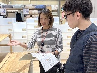 職種/仕事内容 | 仕事内容 【挨拶・清掃】 無印良品では挨拶と清掃を最も大切にしています。 感じの良い笑顔とアイコンタクトを届け、毎日お店を綺麗に保つことで、お客様に気持ち良くお買い物を楽しんでいただきます。 【レジ応対・商品ご案内】 レジでは対面レジ業務とセルフレジでのご案内を行います。 お客様へ感謝を伝え、感じ良くお見送りをします。 商品のご案内では、お客様とコミュニケーションを取り、ご要望に応じて在庫確認やお取り寄せ、お取り置きも行います。 【売場・商品管理】 売場・商品管理は、売場作り、品出し、メンテナンス、在庫管理が主な仕事です。 お客様が選びやすく手に取りやすい売場を作ります。 衣服、生活、食品と幅広い商品に触れることができます。 【おたより】 店舗ブログです。店舗のインフルエンサーとして情報発信を行います。 ブログを通して多くのお客様に店舗を知っていただくことができます。 【ミシンでの裾上げ】 パンツをご購入のお客様へは裾上げの対応も行います。 ミシンのスキルも身につけられます。 趣味や仕事でご経験のある方、歓迎です。 |
