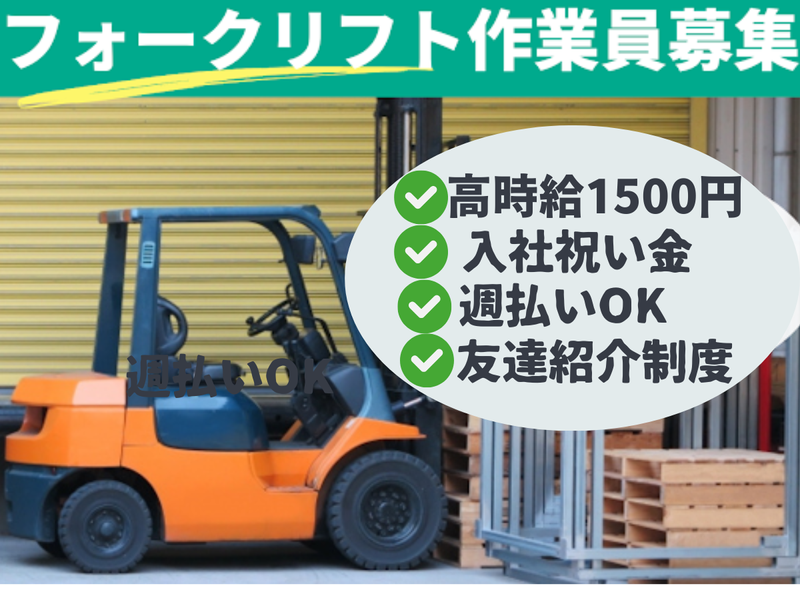 職種/仕事内容 | 仕事内容 【このお仕事のポイント!】 ✅資格・経験を活かせるお仕事 ✅月収22万円以上可能 ✅入社祝い金3万円あり ✅嬉しい♪土日祝休み! ✅急な出費も対応!週払いOK ✅現地・オンライン面談OK ✅ミドル・シニアスタッフも活躍中! ✅現地出張面接・オンライン面接OK! =========== <お仕事内容> 空調完備の倉庫内で フォークリフトオペレーターのお仕事。 リーチフォークを使用して、 オフィス用家具・高級家具などの仕分けをお願いします。 フォークリフトに乗っている時間が ほとんどなので、体力的負担は少なめです。 ※フォーク作業7割:手作業は多くても3割 経験が浅い方やブランクのある方は 「慣れるまでは手作業の割合多め」など 融通を利かせて働くことができます。 ー ●勤務地:神奈川県横浜市鶴見区 ※詳細の勤務地は応募後にて ●アクセス:「浅野駅」徒歩5分 ※バイク・自転車通勤OK ー <当社HP> https://haken-nl.com/ |