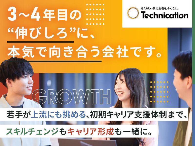 職種/仕事内容 | 仕事内容 「今よりもっと成長したい」 「将来の選択肢を広げたい」 その気持ち、私たちが全力で応援します。 テクニケーションでは、 エンジニア一人ひとりの ”これから”を大切にしています。 経験、スキル、希望に合った 案件へアサインしながら、 ムリなく着実にキャリアアップしていける環境を整えています。 ■■■■■■■■■■■■■■ ■ サポート体制バッチリ ■ ■■■■■■■■■■■■■■ ◎案件配属&定期フォロー体制あり ◎早い段階から上流工程に挑戦可能! ◎クラウドやモダン環境などの案件豊富 ◎将来的にはフルリモートも可能 「自分の市場価値をもっと高めたい」 「上流にも関われるようになりたい」 「エンジニアとしての選択肢を広げたい」 そんな方にこそフィットする環境です。 3年、5年先のあなたのキャリアを ちゃんと見てくれる会社で “価値になる経験”を積みませんか? ■■■■■■■■■■■■■■ ■ 着実に次のステージへ ■ ■■■■■■■■■■■■■■ 【仕事内容】 ・AWSやオンプレミス環境での運用・保守 ・社内NWの構築サポート・設定 ・VMware仮想環境の運用管理 ・クラウド環境の運用設計補助 【技術環境】 OS:Linux、Windows Server 仮想環境:VMware クラウド:AWS(基礎〜構築レベル) ★案件はスキルや希望を最大限考慮! 「今できること」+「挑戦したいこと」の 両方をカバーできるようアサインします。 また、先輩による丁寧なOJTと レビュー体制があるので、 実務の中で着実にスキルを磨けます。 ――運用保守から構築、そして基本設計へ。 将来的にはクラウド設計や提案といった より上流のフェーズにもチャレンジが可能。 自分の意思を尊重した案件アサインで、 キャリアの幅がどんどん広がります。 ■■■■■■■■■■■■■■ ■ 私たちについて ■ ■■■■■■■■■■■■■■ 2019年に設立以来、 エンジニアファーストを掲げ、 順調に成長を続けている 「株式会社テクニケーション」。 現在は414名以上のエンジニアが活躍し、 売上は年間32億円規模にまで拡大。 「評価を見える化し、 成長を正当に還元する」仕組みで、 定着率”91%”を実現しています。 ◆案件単価開示 全社員平均で【前職比+150万円】の年収アップを実現! ◆資格取得の受験費・書籍代は会社が負担 技術書購入も年1万円まで補助。 エンジニア同士のナレッジ共有も活発! ◆年間休日130日以上&土日祝休み 月の平均残業も7.8時間と少なめ。 スキル次第でフルリモートもOK! 「技術者がちゃんと評価される」 頑張った分、スキルを磨いた分、 ちゃんと報われる会社です。 |