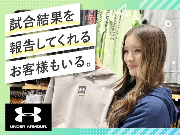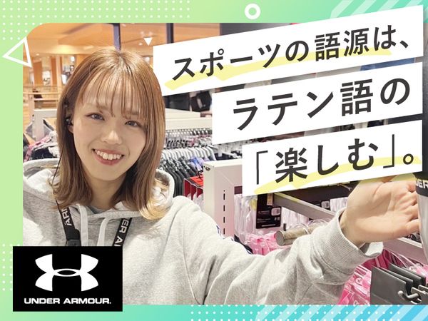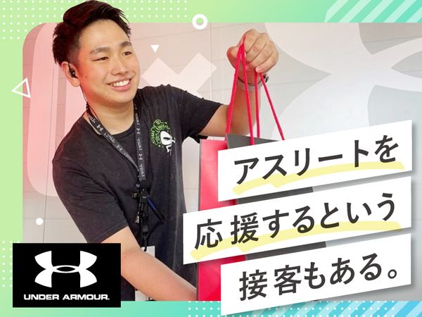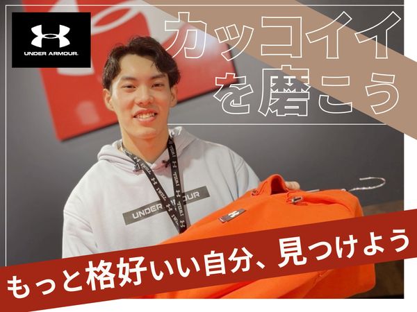 職種/仕事内容 | 仕事内容 アンダーアーマーが好きならもちろん、 「スポーツブランドで働いてみたい!」 「友達に自慢できるバイトがしたい!」 「なんとなくカッコよさそう」 …そんな応募動機も大歓迎!真っ新な環境で、新しい仲間と一緒にアンダーアーマーの歴史を創り上げていきましょう! \\学校も、部活も、遊びも楽しむ!//  ̄ ̄ ̄ ̄ ̄ ̄ ̄ ̄ ̄ ̄ ̄ ̄ ̄ ̄ ̄ ̄ ̄ ̄ 「講義の合間にサクッと稼ぎたい」 「サークルの練習と両立したい」 「テスト前はシフトを減らしたい」 「週末はガッツリ働きたい」 …そんなあなたの希望を最大限に考慮!週3日~、1日4時間~勤務OKなので、あなたの学生生活に合わせて無理なく働けますよ。 \\ バイト仲間と絆を深める特典も!//  ̄ ̄ ̄ ̄ ̄ ̄ ̄ ̄ ̄ ̄ ̄ ̄ ̄ ̄ ̄ ̄ ̄ ̄ ̄ アンダーアーマーの最新アイテムをお得にGETできるスタッフ割引あり!働きながら次にGETしたいアイテムを探したり、バイト仲間と情報交換するのも楽しみの一つに。 スポーツイベントの企画・運営にも関われるので、イベント好きのあなたも大歓迎です! \\ 未経験でも安心のサポート体制 //  ̄ ̄ ̄ ̄ ̄ ̄ ̄ ̄ ̄ ̄ ̄ ̄ ̄ ̄ ̄ ̄ ̄ ̄ ̄ 「バイトデビューだから不安…」「販売経験がないけど大丈夫かな?」なんて心配はいりません! 充実した研修と、困った時にすぐに相談できる優しい先輩スタッフがあなたをしっかりサポート◎商品知識や接客スキルは、働きながら自然と身につけられますよ。 - 【具体的な仕事内容】 ■お客様対応 ■品出し ■レジ ■商品管理、商品整理 ■スポーツイベントの企画・運営など / ブランドの魅力を伝える 心強いサポーター役に! \ お客様のスポーツスタイルに合わせて、アンダーアーマーの強いこだわりや魅力を、一緒に広めていきましょう! |