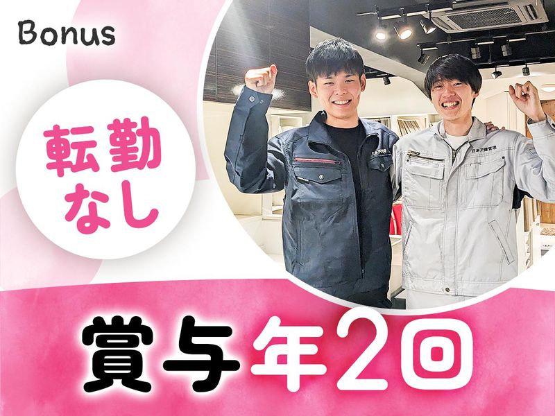 対象となる方 | 求めている人材 \学歴不問◎業界・業種未経験歓迎/ 第二新卒・ブランクがある方もOK! 9割以上の先輩が未経験からスタート! 研修も充実しており、入社時は住宅に関する知識がなくても問題ありません。 【必須】 ・普通自動車免許(AT限定可) ・基本的なPCスキル(タイピングや簡単な文字入力ができる程度) ・35歳以下の方(長期勤続によるキャリア形成のため) 【こんな方にピッタリ!】 □人とのコミュニケーションが好きな方 □新しいことにチャレンジしたい方 □長く腰を据えて活躍したい方 □誰かの役に立つ仕事に就きたい方 □プライベートと両立して働きたい方 □高月給で安定収入をGETしたい方 etc. =…=…=…=…=…=…= \ 教育制度が充実! / ■座学で基礎知識を学ぶ ■OJTでマンツーマン指導 ※入社日から5日間は大阪本社にて研修を実施し、その後、大宮オフィスにて研修を行います。 (宿泊費や移動交通費は全額会社負担/詳細は下記「試用・研修期間欄」へ) ■社内資格を取得 上記の研修を実践しながら、 『点検マイスター』という社内資格を取得します。その後、独り立ちとなります。 年齢の条件と理由:あり(例外事由3号のイ・35歳以下(長期勤続によるキャリア形成のため)) |