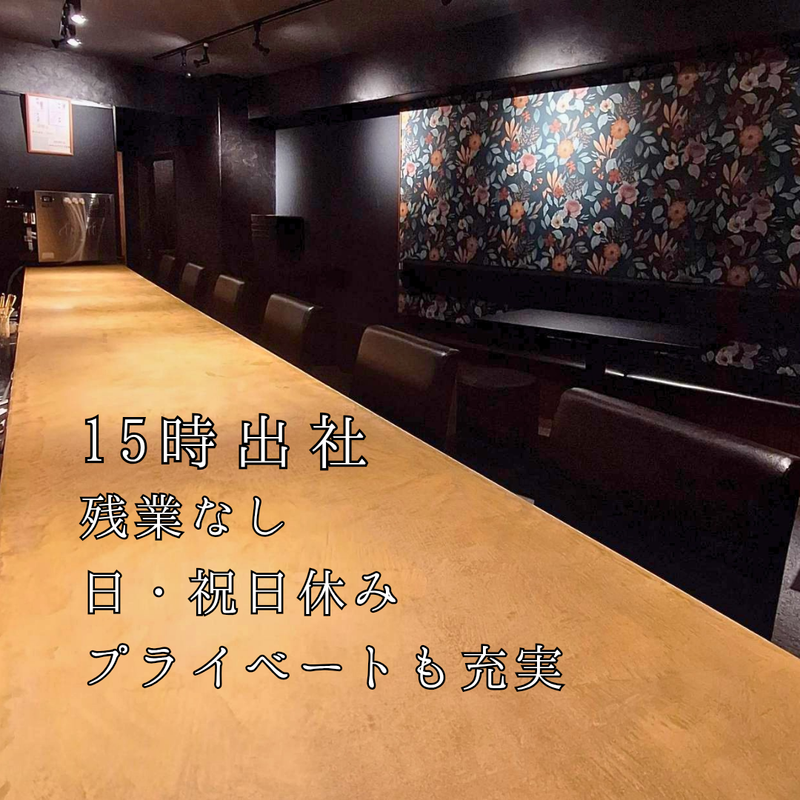 勤務時間 | 固定時間制 勤務時間詳細 実働時間:1日あたり7時間 平均勤務日数:1ヶ月あたり26日 【勤務時間・曜日】 勤務時間: 15:00~23:00(休憩1時間・実働7時間) 残業: 基本的になし(片付けが終わり次第退社して頂きます) |