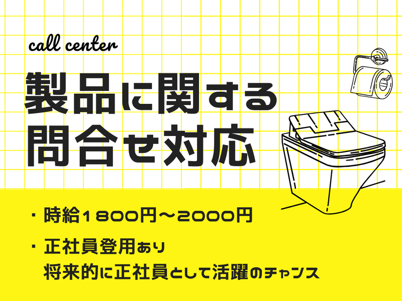 職種/仕事内容 | 仕事内容 【大手住宅設備メーカーのコールセンター】 安心の大手企業で安定勤務! お取引先(販売店・施工店)からのお問合せに対応する、社内コールセンターのお仕事です。 【お仕事内容】 ・製品に関するお問い合わせ対応(電話受付) ・カタログやサンプルの手配 ・対応内容のデータ入力 など ※お客様は一般の方ではなく、販売店や施工業者などの法人様です。 専門的な内容もありますが、じっくり学べる研修があるのでご安心ください◎ 分からないことはすぐに質問できる環境です! - ◇アピールポイント ✨ 安定の大手メーカー勤務! 安心の職場環境で、長く腰を据えて働けます。 法人対応が中心なので落ち着いて対応できます◎ ✨ 研修・サポート体制ばっちり! 専門知識は入社後にじっくり学べるので、未経験でも安心。 先輩がしっかりフォローしてくれます! ✨ 働きやすい環境&チーム体制◎ 約17名のチームで20~40代が活躍中。 質問しやすく、協力しながら進める雰囲気です♪ ✨ プライベートも大切にできる♪ 残業は月10時間以内と少なめ! 周辺にはショッピングモールや飲食店も多く、仕事後も充実◎ ✨ 駅チカ&キャリアアップも可能! 新宿駅からすぐで通勤ラクラク。 将来的に正社員登用のチャンスもあり、長期的にキャリアを築けます! - 大阪に拠点を置いておりますが、東京エリアでのご紹介・ご入社実績も多数ございます。 東京の企業さまとのつながりも多く、これまでにも多くの方が首都圏の職場でご活躍中です。 面談はすべてオンラインで対応しておりますので、場所を問わず安心してご相談ください! |