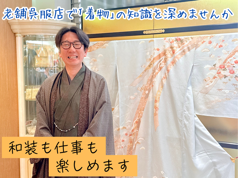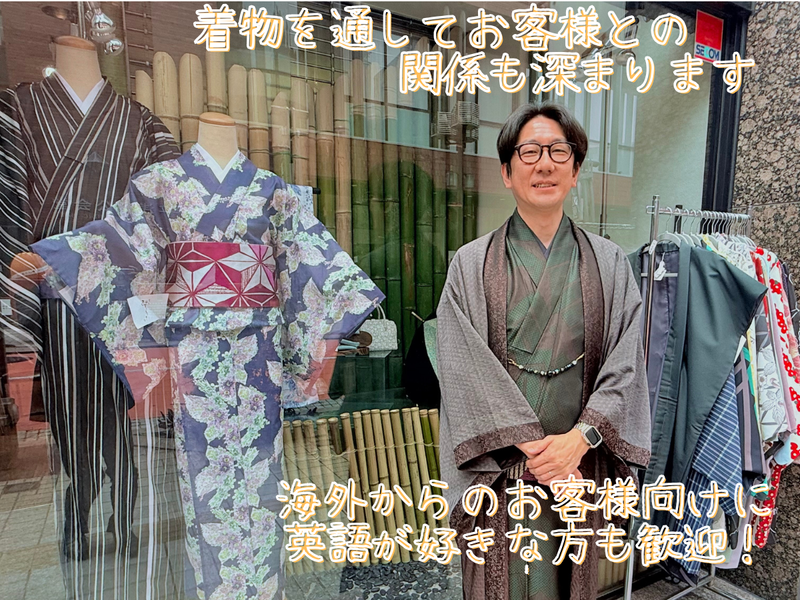 対象となる方 | 求めている人材 経験不問 学歴不問 年齢不問 地域柄、外国人の観光客の方が多いので英語ができる方は活かせます* 英語は必須ではないので、会話を楽しみながら働きたい方なら歓迎します♪ ⭐呉服店の勤務経験者はもちろん歓迎 ⭐未経験者や異業種からの転職も歓迎します ⇒元カメラマンの方も活躍中! 様々な経歴を持つスタッフが在籍しています。 和気あいあいとした雰囲気なので、和装に囲まれながら楽しく働きたい方にオススメ! <インタビュー:入社8年目 課長(カメラマンからの転職)> Q.入社のきっかけを教えてください。 大学の同期である浅草店店長に誘われたのがきっかけです。 学生時代からの友人だったので、安心して入社を決めることができました。 Q.これまでの経験と現在の仕事の魅力を教えてください。 以前、ユニクロで3年間アパレル販売の経験があります。 ユニクロでは売り場作りがメインでしたが、 現在の着物の仕事は、お客様と密に接客できる点が非常に楽しいです。 入社して初めて知ったのは、 「着物は買って終わりではない」ということ。 着付けには技術が必要なので、お客様が着こなしに困らないよう、着付け教室も定期的に開催しています。 また、一緒にお出かけする会なども企画し、お客様が着物を楽しみながら、長くお付き合いできる関係性を築けるよう日々努めています。 Q.未経験で不安です‥。着物の知識習得について教えてください。 着物の種類、素材、TPOなど、覚えることはたくさんありますが、 最初の1年である程度の基本は身につけることができます。 奥が深く、まだまだ学ぶことも多いですが、 私たち社員も月に一度、着物の先生から新しい情報を教わっています。 1年を通して「この時期はこの着物で」という体験ができるので、1年あれば着物のベースは身につけられますよ。 Q.この仕事で活かせる経験はありますか? 販売業の経験があれば、接客スキルを活かすことができます。 当社のスタッフは、私を含め着物未経験者がほとんどです。 課長の一人は百貨店での勤務経験があるなど、様々なバックグラウンドを持つ社員が活躍しています。 共感を大切にし、親密な関係を築きやすいスタッフもいれば、 素材や作りといった知識をベースにした相談に乗ることが多いスタッフもいますので、 あなたらしさを活かして、強みを生かした接客をしてくださいね。 Q.お客様の層とスタッフ構成を教えてください。 最近は男性のお客様も増えており、 ご夫婦やカップルで来店される方もいらっしゃいます。 現在、社員は20代が1名、30代が2名、40代が2名と幅広い年齢層が在籍しており、 それぞれの層が持つ良さを活かして働いています。 Q.この仕事のやりがいを教えてください。 お客様が着物を楽しんでいる姿を見たときに、最もやりがいを感じます。 お客様が着物を着てお店に来てくださったり、 浅草という土地柄、着物で散策を楽しみがてらお店にも寄ってくれるなど、 そんな楽しい姿を見ると、ご紹介してよかったと心から思えます。 お客様とは長くお付き合いすることになるので、 お子様の入学式や卒業式、七五三、お宮参りといったライフイベントに寄り添えることも喜びです。 「着物を着て行ってきました!」という報告をいただくことも嬉しいですね。 A.これから一緒に働くあなたへメッセージ 着物に興味があれば、ご自身もこの仕事を心から楽しめますし、着物を楽しみたいお客様と出会うことができます。 スタッフの年齢層が幅広いので、様々な年代の意見を聞くことができ、安心して学びやすい環境です。 逆に「今の20代・30代のトレンドは?」と、こちら側から教えてもらいたいことを聞くこともあります笑 ゆくゆくはご自身でイベントを企画したり、「こんな商品を置いてほしい」といった意見も大歓迎です。 幅広い意見を吸い上げながら、一緒にこの仕事を盛り上げていけることを楽しみにしています。 |