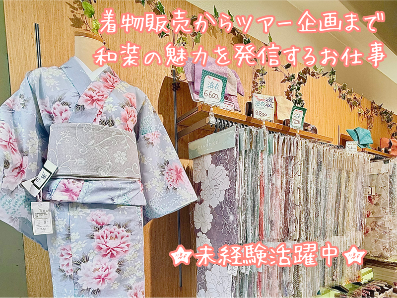 職種/仕事内容 | 仕事内容 ✨和装も仕事も楽しめる老舗呉服店✨ ✨着物に関するイベント企画も有!✨ <仕事内容> ✅着物や和装小物の販売 ✅お客様への商品説明 ✅既存お客様への電話連絡 ✅着物着付け会の開催 ✅着物ツアーの企画 ✅各種SNS等での告知 など <ココが他と違う!幅広い仕事に携われます> お任せするのは店舗での販売業務だけではありません。 時には、着付けやツアー等のイベント参加などで店舗を離れたお仕事に関わることも。 お着物ツアーは3ヶ月に一度の開催。 行き先は京都、山形、沖縄などさまざまで、基本的に一泊の予定。 ツアー参加者だけでなく添乗する社員も着物についてより深く知ることができます。 お仕事に慣れてきたらツアーの企画から携わっていけますよ! 着付け会など、販売の場面以外でお客様とお話しできるチャンスも多数あり! コミュニケーションも楽しみながら働けます。 <お店について> 創業119年となる老舗呉服店です。 浅草という風情ある土地柄もあり、海外からの観光客も含め多くのお客様にご利用いただいています。 そのため、和装が好きな方はもちろん、英語が得意な方・英会話を学びたい方も大歓迎! 詳しくはHPもチェック! https://www.kimono-yusui.com/ |