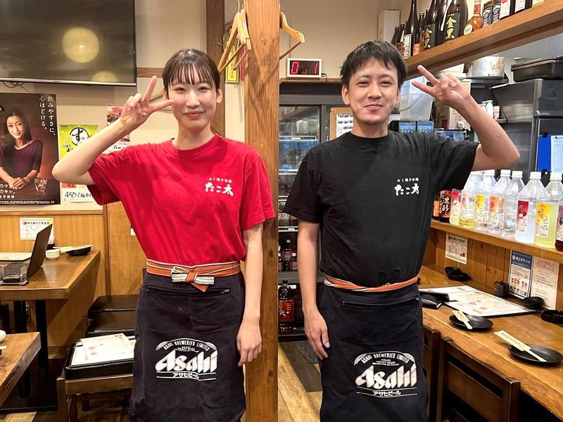 職種/仕事内容 | 仕事内容 \\ 「たこ太」は働きやすさ抜群♪ // 平日のみ!1日2・3h~シフト融通◎ 高時給×1週間毎のシフト制×まかない有 20代の学生・フリーター中心に活躍中! 【 仕事内容 】 ・お客様の案内 ・オーダー取り ・ドリンク作り ・料理提供 などをお任せします! 【 未経験大歓迎! 】 未経験もバイトデビューもブランクさんも大歓迎! 飲食店で働くのがはじめてでも、私達が手取り足取り丁寧にお教えします◎ まずは明るい笑顔でお客様対応ができればOKです♪ 【 スタッフについて 】 20代を中心に学生さん&フリーターさんが活躍中!! 同年代のスタッフが多く、皆とってもにぎやか♪ 「学校以外の友達ができた!」「バイトでこんなに仲良くなれるなんて!」 そんな声があがるぐらい、みんな仲良しなんです☆ だからこそチームワークも抜群◎ 困った時は助け合うし、わからない事は教え合って働いています。 気さくでオモロイ先輩がたくさんいるので、新人さんもスグ馴染めますよ♪ \\ オススメポイント // ✨お店は駅チカ&ビジネス街のど真ん中! ✨美味しいまかない有!もちろん無料☆ ✨清潔感があれば、髪型・髪色自由! オシャレも楽しめます♪ ✨希望者には週払いも対応可◎ 【 たこ焼き酒場たこ太について 】 外はカリッ、中はとろっとした食感のふわふわなたこ焼きを味わえる「たこ焼き酒場たこ太」。 朝仕入れる新鮮な生だこを包み込んだたこ焼きが自慢で、宴が盛り上がる充実なラインナップの美酒も魅力のひとつです♪ 店名に恥じない当店自慢のたこ焼きは、厳選素材を使ったこだわりの一品! たこ焼きはバリエーションが豊富なので、その日の気分によっていろんな味が楽しめると大人気です☆ |
