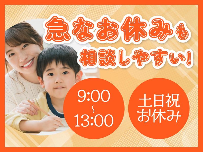 勤務時間 | シフト制 勤務時間詳細 ▼日勤のみ・パートタイム勤務▼ 9:00~13:00(9:00~14:00勤務もOK) ■残業はありません! ■月曜~金曜の平日固定勤務 ■扶養内勤務OK |