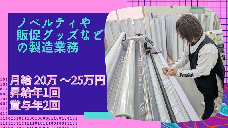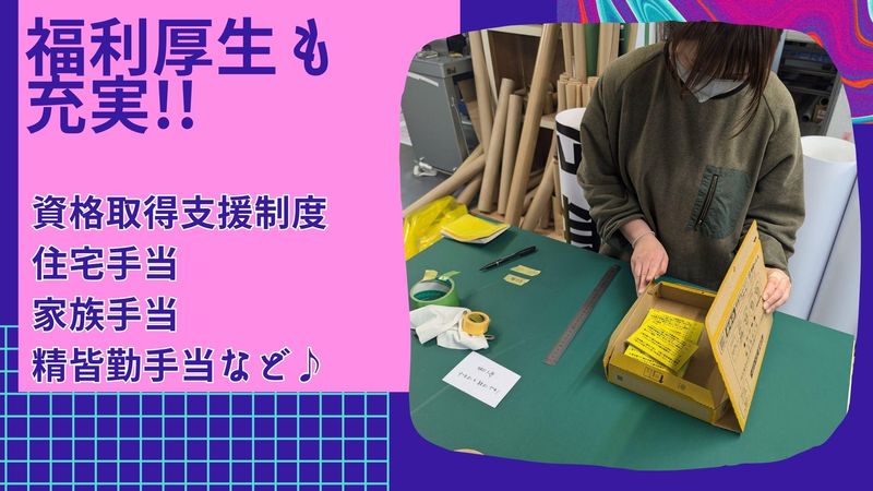 職種/仕事内容 | 仕事内容 \美術やモノづくりのスキル、活かせます!/ 学校の美術室のような“ものづくり工房”で、 手に職をつけて働く【製造スタッフ】募集✨ 「手先を動かすことが好き」 「美術・デザインが得意」 「IllustratorやPhotoshopを扱える」 そんなあなたへ。 当社で、“ものづくりのプロ”として働きませんか? ✦仕事内容✦  ̄ ̄V ̄ ̄ ̄ ̄ ̄ ̄ お任せするのは、 横断幕や看板などの製造業務。 具体的には── ・印刷物のセット作業 ・仕上げや検品作業 ・IllustratorやPhotoshopを使った データ作成や修正(スキルに応じて)など ※一部、軽作業や手作業中心の業務もあります! 作業はマニュアルがあるので、未経験でも安心。 スキルに合わせて丁寧に教えていきます。 ✦入社後はこんなステップ✦  ̄ ̄V ̄ ̄ ̄ ̄ ̄ ̄ ̄ ̄ ̄ ̄ ̄ 入社後はいきなり難しい作業を お願いすることはありません。 まずは印刷機の補助や軽作業など、 シンプルな作業からスタート。 製造工程の流れや専門用語、 道具の使い方なども 一つずつ丁寧にお教えします。 実際に未経験からスタートした 先輩も多く在籍しており、 分からないことはすぐに相談できる 風通しの良さも魅力の一つです。 少しずつ仕事に慣れてきたら、 印刷物の加工やデザイン調整 などにもチャレンジ可能。 あなたのペースに合わせて、 ステップアップをしっかりとサポートします。 「モノづくりが好き」 「手を動かすのが得意」という方なら、 きっと楽しく成長できる環境です。 ✦会社の魅力・働きやすさ✦  ̄ ̄V ̄ ̄ ̄ ̄ ̄ ̄ ̄ ̄ ̄ ̄ ̄ 「美術の授業が好きだった」 「ものづくりが得意」 ──そんな方が活躍できる、 アトリエのような職場です。 印刷や加工など、 手作業とデジタルが融合する工程が多く、 “つくる楽しさ”を日々実感できる環境。 さらに、土日祝休み・転勤なし・待遇も 充実しており、長く安心して働ける 職場づくりを大切にしています。 ■ 具体的な魅力ポイント ✅美術系の経験が活かせます Illustrator・Photoshop使用◎ ✅創造力があなたの武器に! モクモク作業×チーム連携 1人で集中&助け合いもあり ✅正社員採用で安定感バツグン 設立40年以上の実績あり! ✅土日休みで私生活も充実♪ 年間休日も多めで安心です ✅人間関係◎落ち着いた雰囲気 30~50代が中心に活躍中! ✅転勤なしで長く働ける職場 地元で腰を据えたい方にも◎ ご興味を持っていただけた方は、 ぜひご応募ください。 あなたの“得意”が活かせる職場で、 お会いできるのを楽しみにしています! |