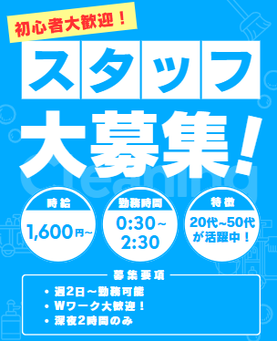 勤務時間 | 固定時間制 勤務時間詳細 ⏰勤務時間 0:30~2:30(実働2時間) ⏩月~金のうち週2~5日勤務 ⏩深夜 |
