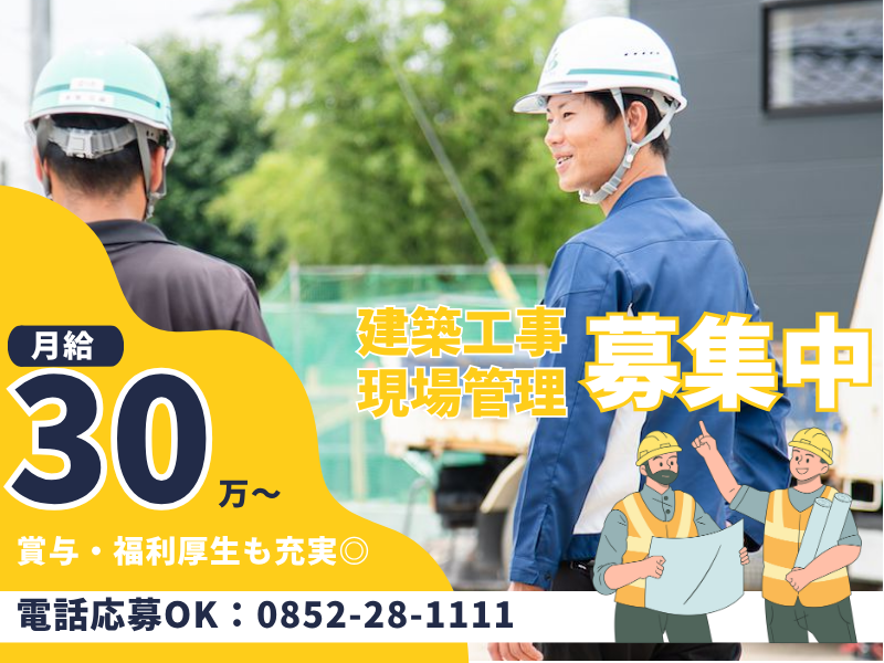 職種/仕事内容 | 仕事内容 \福利厚生もサポート体制も充実!/ ⭐家族手当ありで家庭も安心♪ ⭐退職金制度完備で将来も安心! ⭐フルリノベ済みの社宅あり ⭐Iターン者には住宅手当支給◎ ⭐資格取得支援&合格祝い金制度あり! \働きやすさにも自信あり!/ 転勤なし&泊まり出張なしで安心♪ 独自の休暇制度もあり、メリハリ勤務◎ 残業月20時間以下で プライベートもしっかり大切にできます! 【仕事内容】 建築工事における施工管理業務 学校、病院、高層建築、商業施設や ホテルなどの公共施設など… 大小の規模問わず、様々な施工実績があります! JVではなく弊社単独での施工実績多数! ≪施工事例≫ ・グリーンリッチホテル松江駅Across ・なにわ一水(改修) ・グリーンリッチホテル米子駅前 ・松江カトリック教会 など <具体的な業務内容> ・工事のスケジュール管理 ・安全管理 ・品質管理 ・コスト管理 ・発注者との打合わせ、近隣挨拶 など 入社後はあなたの経験・スキルに 合わせて業務をお任せします! 現在20代の若手スタッフ中心に、 約40名の社員が活躍中! 年齢や経験に関係なく、 風通しよくフラットな社風が魅力。 新人や困っている人がいれば、 すぐ周囲が声がけ、 チームで支え合う風土です。 安心して挑戦できる環境で、 一緒に成長していきましょう♪ |