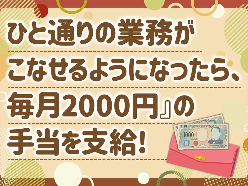 給与 | 時給1,160円~1,200円 給与詳細 基本給:時給 1160円 〜 1200円 収入面も嬉しい! 頑張りをしっかり評価します ◆土日祝は+時給50円! ◆職務手当…月2000円 ひと通りの仕事ができるようになると 支給!早い人で半年ほど、 多くのスタッフが1年以内に 受け取っています。 ◆早朝手当…500円 6時の朝イチから勤務してくれた方には 「朝からありがとう」の気持ちを込めて 早朝手当500円をプラス! 【給与例】 給与例 【シフト・収入例】 ◆学生Aさん…月収5万5200円 ⇒時給1150円×4h×月12日 「学校が休みの土日中心に、 平日1日+土日の週3日で働いてます!」 ◆フリーターBさん…月収12万6500円 ⇒時給1150円×5h×月22日 「朝は別のバイトと掛け持ちで週5日。 Wワークで収入UPを目指しています」 |