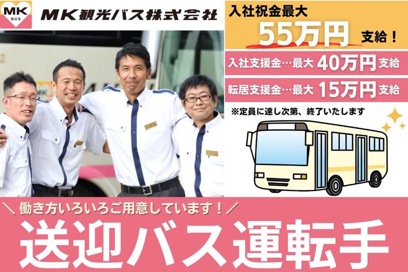 職種/仕事内容 | 仕事内容 ★入社支援金最大55万円支給★ ★最大15万円支給の紹介制度あり★ ★年齢・性別問わず幅広い社員が活躍中★ 病院や駅と大学の間の お客様を送迎する 配送をお任せ! 毎日同じ道だから 道もすぐに覚えられて安心(๑´ ∀`๑) 「長距離運転は不安…」 「すぐに道は覚えられるかな?」 なんて方も大丈夫! 疲れが溜まりにくく、 ストレスフリーで働けます◎ 市民の方々の通勤・通学・通院などの 「暮らしの足」として欠かせない地域密着の交通として 当社で地域コミュニティーを支える バス運転手として働きませんか!? ◆具体的な仕事内容◆ 学校と駅の送迎や 病院の送迎業務をお任せします! 同じ道、決まった時間帯の運行を担当◎ 休憩は大学や送迎先の休憩室または 車内でとっていただきます。 安全な運転で乗客の方々に 快適な送迎時間を提供してくださいね☆ ◆『MKグループ』の一員の安定企業◆ タクシーでおなじみの大手企業 『MKグループ』の一員でもある当社。 安定した企業基盤に加えて、 手厚い研修体制と福利厚生が整っています。 <最大55万円の入社支援金支給!> ★大型二種免許をお持ちの方: 入社月から4分割で55万円 ★特別支援:最大40万円 ★転居支援:最大15万円 <働きやすさに自信あり!> 安定して働きたい方にピッタリ◎ 20代~60代の幅広い年齢層が活躍中です! 当社を最後の就職先として選ぶ ドライバーもたくさんいらっしゃいます。 安心安定の職場で ぜひ一緒に働きましょうo(≧∇≦)o 【会社説明会を下記会場にて開催】 11/9 羽曳野市 LICはびきの 10:00~ 11/20 八尾市 プリズムホール 18:30~ 私服で結構です。まずはお気軽にお越しください。 【ご注意】お申し込みは開催日の2日前15:00までの受付となります 当社HP https://www.mk-bus.com/recruit-site/briefing/ |