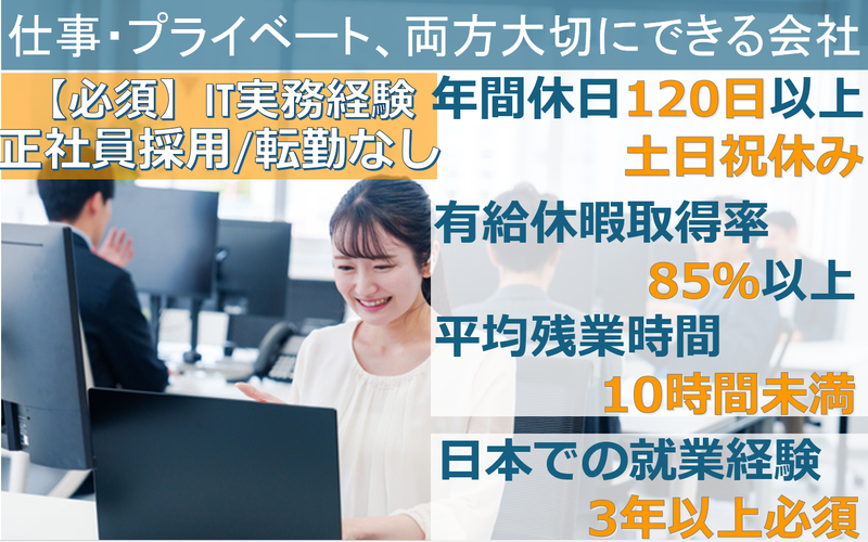 対象となる方 | 求めている人材 ◆ソフト・ITに関する技術領域での業務経験をお持ちの方 ✨資格やスキルについては、充実した研修制度があるので着実にスキルアップできます。 |