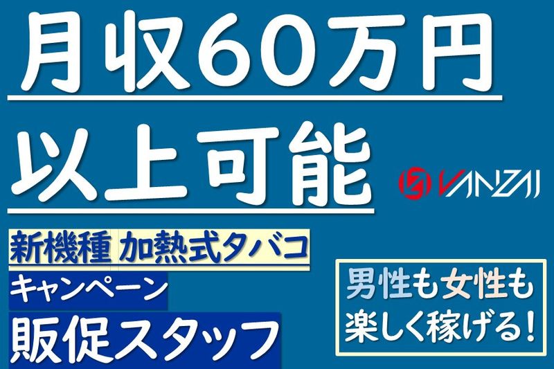 職種/仕事内容 | 【仕事内容】 大手タバコメーカー新機種のイベントキャンペーン販売促進スタッフ募集! しっかり稼げる仕事をしたい方!個人事業主で活躍したい方!大歓迎! ■詳しい仕事内容 大手タバコメーカーからの受託事業である加熱式タバコのPRとキャンペーン販売促進およびスタッフ管理のお仕事です。 ①イベント会場や商業施設での商品PRと販売促進(9:00~20:00の内、8時間) ②キャンペーン協力飲食店での商品PRと販売促進および協力店舗の新規開拓(15:00~23:00) ※販売促進は、販売個数に応じてインセンティブ(追加報酬)が発生します。 ※勤務時間や働き方はご相談に応じます。お気軽にご相談ください。 ■商品P Rとキャンペーン販売促進・新規開拓について イベント会場や商業施設にて来場者の方に、加熱式タバコの試喫とPRをお願いします。 商品PRの方法については、事前研修がございますのでご安心ください! ■協力店舗の新規開拓について 新規開拓は、喫煙の可の事前リストを元に飲食店にご案内します。 (飲食店のお客様に喜んでいただけるキャンペーンのため、ご案内はとても歓迎していただけます) ■仕事の流れ 自宅から現地直行 → 現地販売 → 直帰 ※タブレットを使った簡単な報告作業(実績・在庫管理)あり ①飲食店での販売促進業務と協力店舗の新規開拓 エリア: 東京全域(渋谷・新宿・池袋・新橋・上野・神田・五反田・恵比寿・赤坂・六本木・下北沢・蒲田・吉祥寺など)の飲食店舗 ※一部、神奈川/埼玉もあり。 ②イベント会場や商業施設での販売促進業務 エリア:東京/神奈川/埼玉など 仕事内容や、働き方についての事前のご質問やお問い合わせも大歓迎です。お気軽にご連絡ください。 必要人員が採用出来次第募集を締め切りますのでお早めにご応募お待ちしております。 【求人ID-VAT】 |