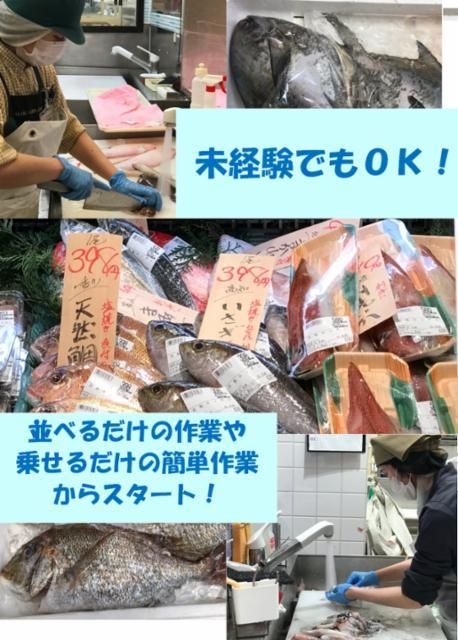 職種/仕事内容 | 仕事情報 ● 仕事内容 お魚の盛り付けやパック、品出しなどからスタート。 ゆくゆくはお魚をさばくまでできるようになります。 包丁を触ったことがある方なら未経験でも全く問題ありません。 新鮮な魚の見分け方、美味しい食べ方も学べて家庭ごでも お役に立ちます! 融通がきくシフト! 出勤日、時間帯はシフト制で調整します。 お子さんの行事や急なご病気、テスト期間など、シフトの調整は ご相談に応じます! 忙しい主婦・主夫、学生さんが長く働いて頂いてます! 扶養内勤務にも対応します♪ 未経験歓迎 スグに覚えられるシンプルな仕事でスキルが磨けます! 慣れるまで先輩がしっかりフォローしますし、マニュアルや サポート体制も充実! だからスーパーマーケットが未経験の方もご安心下さい! どの年代でも安心! 10代~40代、50代、60代など中高年、シニアの方まで幅広い世代 の方に働いていただいています! もちろん年齢不問、経験不問ですので安心してご応募ください。 ハローワークでお仕事をお探しの方も! ダブルワークも歓迎! 短時間勤務できるので、ダブルワークで働く方も増えています。 ダブルワーク先一例 コンビニ、清掃、警備、飲食店、家事代行 倉庫系作業、販売など。 |