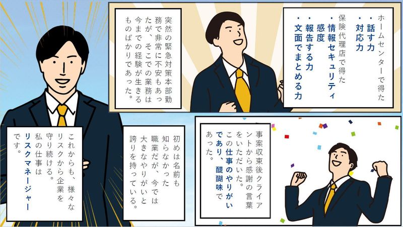 職種/仕事内容 | 仕事内容 ◆*・*◆*・*◆*・*◆*・*◆*・*◆ ”当たり前”を守る!陰のヒーロー!? リスクマネジメントのお仕事! ◆*・*◆*・*◆*・*◆*・*◆*・*◆ このお仕事は、一言で表すと、 「陰のヒーロー」です✨ 皆さんの生活で、こんなことって ”当たり前”ですか?? ・「安心してお買い物できる」 ・「安心して働ける」 これって実は、 陰のヒーローが守ってくれている ”当たり前”なんです。 「人の役に立つ」というやりがいを 味わってみませんか?? ◇◆【お仕事内容】◆◇ 「防犯体制に不備がないか」 「ケガをする危険性はないか」など 店舗に隠れている様々な「リスク」をなくし、改善していきます。 ◇◆【このお仕事で大切なこと】◆◇ ✅「気付き」 ✅「疑問」 ✅「改善アクション」 例えば、、、 「物が落ちていて転倒のリスクがある」 という”気付き” ⇓ 「なぜものが落ちているのだろう」 という”疑問” ⇓ 「これから物が落ちないようにする」 という”改善アクション” このような考え方と行動が、 人々の安心、安全を守ります! ◇◆【最近話題の"カスハラ"って??】◆◇ "カスハラ"という言葉をご存知でしょうか? カスハラとは「カスタマーハラスメント」の略で、カスタマー(顧客・取引先)から受ける嫌がらせや、過度なクレームのことを指します。 店舗にはこのような特殊なリスクも潜んでいます。 このようなリスクから働く人々の 安心、安全を守るのも私たちのお仕事。 何かあったらすぐに頼れる先として、 このお仕事は世の中になくてはならない存在なんです。 ・。・。・。・。・。・。・。・。・ ▼▼ この求人のPOINT! ▼▼ ⭐40代・50代からの転職も歓迎! ⭐充実のサポート体制! ⭐職種・業界未経験、歓迎します! ◆40代・50代からの転職も歓迎!◆  ̄ ̄V ̄ ̄ ̄ ̄ ̄ ̄ ̄ ̄ ̄ ̄ ̄ ̄ ̄ ̄ 40代・50代で転職し、 新しいキャリアに挑戦した先輩も活躍中。 全国に拠点を持ち、 大手量販店や大手企業650社以上との お取引があるなど安定感も抜群です。 ◆充実のサポート体制!◆  ̄ ̄V ̄ ̄ ̄ ̄ ̄ ̄ ̄ ̄ ̄ 「分からないことを聞くため」の部署を構え、 24時間体制でベテランスタッフが あなたをサポートします。 ◆職種・業界未経験、歓迎します!◆  ̄ ̄V ̄ ̄ ̄ ̄ ̄ ̄ ̄ ̄ ̄ ̄ ̄ ̄ ̄ ̄ 専門知識やスキルはイチから学べますので、 未経験からの転職もご安心ください。 |
