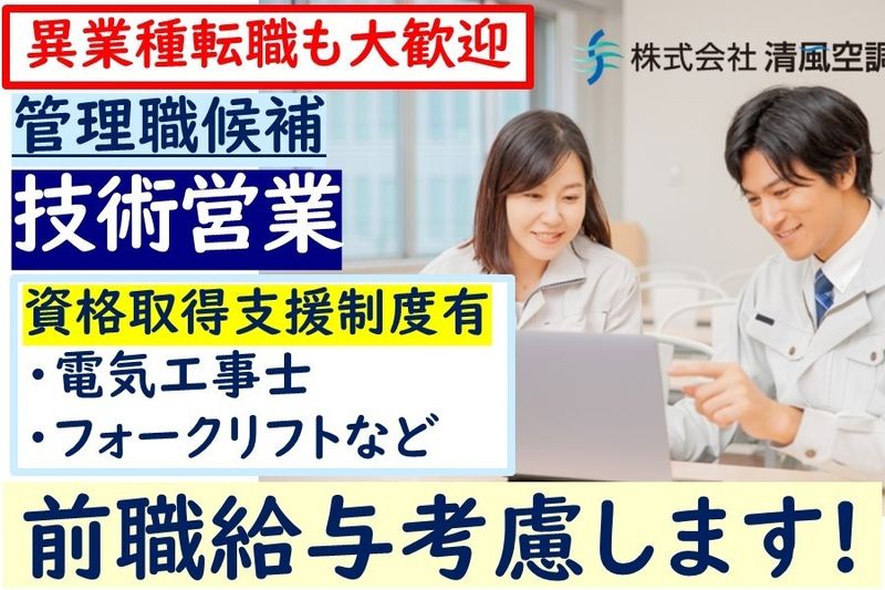 職種/仕事内容 | 【仕事内容】 無資格OK!業界未経験OK!異業種からの転職大歓迎!事業拡大に伴い、技術営業職を増員募集! 20代、30代、40代、50代と幅広く活躍中! ◎異業種からの転職者が活躍中です!下記のようなご経験のある方募集! ・家電販売スタッフ、家電量販店販売員、引越スタッフ、便利屋スタッフなど。 ・建築設備系はもちろん、電気、水道、ガス、ダクト、建築業界、製造業界など。 ・接客販売や、サービス業からの転職者も活躍しています! ・CADを使ったお仕事の経験のある方も活躍しています! 感染症対策や、より快適で安全な環境を創るために「空調整備」・「空調プロデュース」の需要は年々増え続け、当社への依頼は増加の一途です。 SDGsやエネルギー問題など、社会課題への取組みを背景に今後更に成長が見込まれます。 ■具体的な仕事内容 企業に対しての空調設備の設計・施工管理と空調環境整備の提案営業 ・現場施工およびメンテナンス業務 ・受発注業務(見積作成や施工受注・業者手配など) ・クライアントと委託外部業者との調整 ・ルート営業(既存取引先や関連企業との関係構築および提案) など ※事務サポートあり/書類作成(安全書類やフロンガス処理書類・マニュフェストなど)は本社事務スタッフが作成対応しております。 ●頑張りや姿勢を正当に評価する環境です ・業務に活かせる、評価対象資格の取得に前向きに取り組める方 ・お客様の疑問や要望に対し、適切に対応できるコミュニケーション力 └ 分からないことを曖昧にせず、すぐに社内で確認・調べて対応できる ・素直に学ぶ姿勢や、前向きに行動できる積極性 お客様一人ひとりに誠実に向き合い、打ち合わせ後の報連相や迅速な対応を積み重ねることで信頼関係が生まれます。 その結果として、他のお客様をご紹介いただくこともあり、こうした信頼に基づく成果は評価としてしっかり反映されます。 ●仕事のすすめ方 まずは、現場での施工業務や受発注業務を行い、仕事を覚えていきます。 企業や店舗等の業務用エアコンを取り付けたり、定期的なメンテナンス業務が中心になります。 クライアント毎に抱えるニーズや課題、その解決のためにどのような空調環境整備が必要なのか、業務を円滑進めるためのノウハウを学びます。 取引先や関連業者との信頼関係を築くともに、受発注業務にも携わっていただき、より良い環境整備に向けた提案営業を目指します。 ●業界未経験の方も大歓迎 経験豊富で仲間想いのスタッフが多数在籍しているから、未経験の方にも丁寧に理解できるまで一緒に仕事をしながらお教えします。 もともと大手空調設備会社の社員だった当社代表が、「もっとお客様に喜んでいただけることを」「もっと働く仲間が活躍できる環境を」 その思いから独立起業し、その思いと代表の人柄に共感した現在の幹部メンバーとスタートした当社。「ともに働く仲間」を大切にする想いは、 社員全員に浸透しています。社内イベントなどの社員間交流の機会も大切にしています。 ●働きながら資格取得可能 働きながら勉強して資格取得を目指すことが出来ます。資格取得費用は、会社が負担してくれるので、費用負担なく試験に臨むことが出来ます。 取得資格例…・電気工事士、フォークリフト、二種電気工事士、電気工事施工管理技士、ガス溶接、高所作業車、フロンガス取り扱いなど ●株式会社清風空調について 30年以上空調設備に携わり実績と人との繋がりや信頼を得てきた代表が、より良いサービスと環境創りを目指してスタートした当社。 業界の中では、まだまだ業歴の浅いベンチャー企業ですが、そのネットワークは大きく広がり毎年業績を伸ばしています。 いざというときには頼りになり、社員想いで、でも普段は気さくで茶目っ気のある代表の人柄は、社員はもちろん多くのお客様が繋がりを 大切にしてくださっている魅力の一つです。 企業ホームページは、『清風空調』で検索してみてください! ■職場見学やお問合せもOK いきなりの応募は少し不安、仕事のことや待遇のことを質問したい、そんなご興味をもっていただけましたら 職場見学・ご質問のお問合せも大歓迎です。 ご応募・ご連絡お待ちしています。 【求人ID-SK01】 |