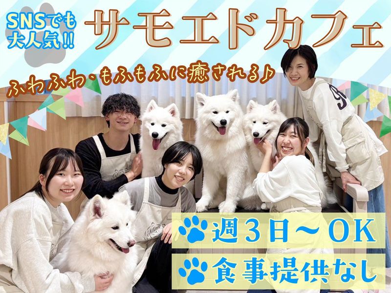 職種/仕事内容 | 仕事内容 可愛いサモエドに囲まれながら働けるドックカフェです♪ カフェといっても、ドリンクはセルフ式で食事の提供もないため調理業務はありません! 「犬が好き」「人とコミュニケーションを取り合いながら働くのが好き」そんな方にピッタリのお仕事!ぜひご応募ください!! 具体的なお仕事内容は・・ ◆店内管理・清掃など 清掃を特に重視しています。 お客様とサモエドたちが快適に過ごせるよう、清潔な店舗作りをお願いします! ◆SNS運用 InstagramなどのSNSに力を入れています! どうしたら多くの人にお店のことを知ってもらえるか、日々考えながら取り組んでいただきたいです! ◆犬のお世話、体調管理、しつけ ◆接客 ◆お散歩 ◆来店受付(会計、流れ説明) などをお任せします! お仕事はイチから丁寧にお教えするので、未経験の方もご安心ください♪ |
