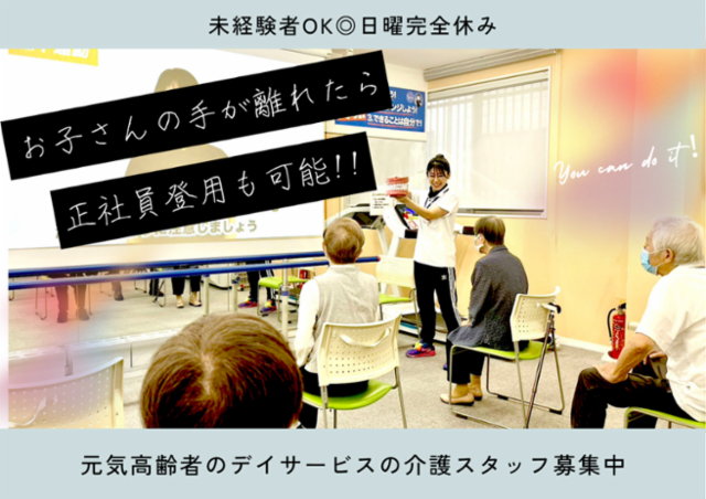 待遇・福利厚生 | 【保険制度】 雇用保険、労災保険、健康保険、厚生年金 【福利厚生】 メリット 扶養内控除OK | 週1日~OK | 週3日~OK | 20~30代活躍中 | 40~50代活躍中 | 未経験OK | 入浴介助なし | 半日型リハビリデイサービス | 禁煙・分煙 | 健康保険あり | 厚生年金あり | 雇用保険あり | 労災保険あり | シフト制 | 屋内禁煙 |