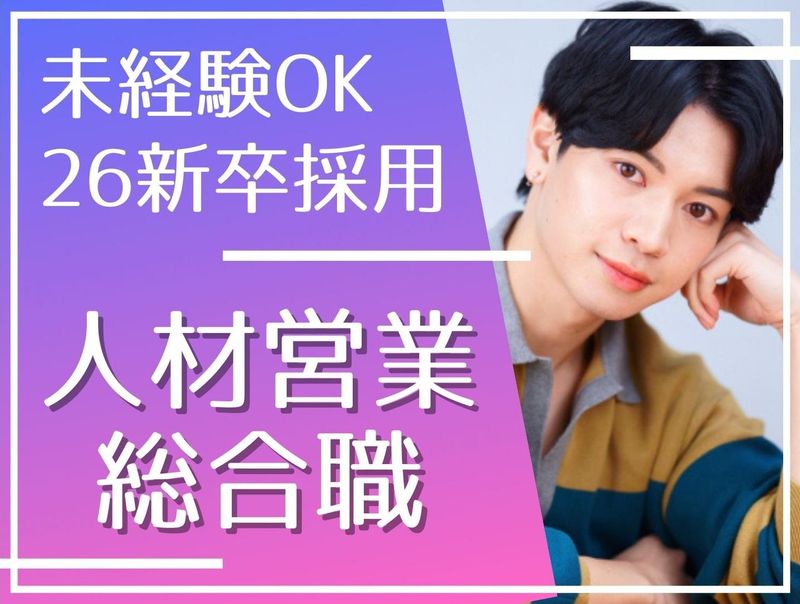 対象となる方 | 求めている人材 ◆2026年3月卒業予定の大学生・大学院生 ◆既卒・第二新卒者も歓迎します ◆未経験からのチャレンジ歓迎 私たちは総合人材サービス商社として、 企業と求職者の双方にとって最適な ソリューションを提供することを 使命としてきました。 そのため、当社が求めるのは人柄や人物像を 重視したヒューマンスキルや 仕事に対する思いや姿勢です。 「挑戦したい」という思いがあれば大丈夫。 まずは気軽にご応募ください。 《 下記ワードで探している方も歓迎 》 企画、企画営業、販促企画、広報、 人材育成、組織作り、採用業務、 マーケティング など 《 ちなみに… 》 異業種からの転職者も多い当社。 先輩たちの前職もさまざまです。 販売、飲食、サービス、パート、 アルバイト、アパレル、家電量販店、 スマホ販売、携帯電話販売 など |