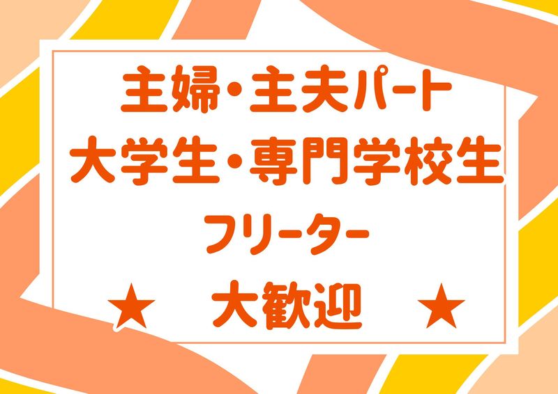 対象となる方 | 求めている人材 学歴不問 男女不問 販売・接客が未経験の方、大歓迎! 大学生さん、主婦・主夫パートさん、フリーターさん歓迎 初めてバイト応援! テスト期間や就活・インターンも考慮してシフトOK! 友達と一緒の応募もOKなので安心してスタートできます。 就活を控えた大学生さんもOK! 基本的な社会人マナーやコミュニケーション能力を磨くことが可能です。 ブランクある方もOK! 子育てがひと段落したので復職を考えていらっしゃる方もお待ちしています! |