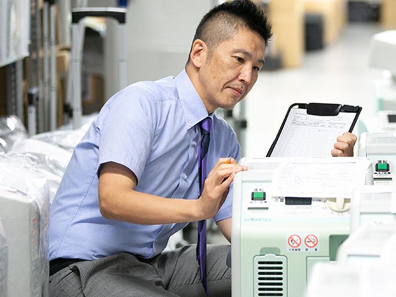 職種/仕事内容 | 仕事内容 ////// この求人のポイント ////// ✅残業月平均10時間とほぼなし! ✅土日祝休み&年間休日121日♪ ✅時間外・住宅・家族など手当充実◎ ✅年齢給による定期昇給&賞与あり! ✅正社員登用実績多数あり◎ //////////////////////////////// 繊維・化学メーカーである、帝人株式会社を 核に「マテリアル」「ヘルスケア」「IT」の 領域でグローバルに展開する帝人グループ。 当社は帝人のヘルスケア事業の一翼を担い、 医療関係者に対する医薬品の情報提供活動、 ならびに在宅医療機器などの営業・サービス を提供しています。 【多くの出会いと長いおつきあいの仕事】 あなたにお願いするのは、在宅医療機器 の設置、使い方のフォロー、定期点検など。 導入しておしまいではなく、担当している すべての患者さんと定期的にお会いして、 Quality of Lifeの向上をサポートしていく やりがいに満ちた仕事です。 【未経験スタートでも大丈夫!】 医療機器の取り扱いについては、研修や 工場見学で一つひとつ、きっちり理解。 また、専門知識を持ったチームメンバーと のOJTを通じた協働で仕事が進むため、 安心して取り組んでいくことができます。 ▼具体的には 営業担当から連絡を受け、AT社用車で 1日に訪問するのは5件ほど。 慢性呼吸不全や睡眠時無呼吸症候群など の自宅療養を始める患者さんのご自宅に 医療機器(10kg程度)を納入し、装着の 仕方やお手入れの方法などをご案内します。 また社内での患者さん情報のPC入力や 在庫確認などの業務もあります。 【患者さんの状況把握も大切な仕事の1つ】 導入後には「適切に使われているか」 「消耗品は切れていないか」など、 日常的なフォローで患者さん宅を回ります。 特に独居のお年寄りや高齢のご夫婦など、 支援が手薄になりがちな患者さんの元へは、 普段からなるべく足を運びます。 たとえば、在宅酸素療法(HOT)に使用 する酸素濃縮装置の酸素量。本来は医師が 指定しますが、いつのまにか患者さんが 勝手に変えてしまう場合があります。 その行動が体調の変化を反映していること もあるので、病院に必ず連絡を入れるよう、 営業職と連携していきます。 また、半年に1回の定期点検では、 フィルターまわりの清掃や、停電時などに 切り替わるバッテリーの充電チェックなど、 機器が最適な状態を保っているか しっかりと確認します。 【あなたのこれからの活躍に期待!】 ワークライフバランスの取れた働き方は もちろん、家族手当や産前産後休暇、 育児休職制度、そして介護休職制度など ライフイベントに寄り添う福利厚生を用意。 しっかりバックアップしますので、 2~3年後の正社員登用を目指して スキルアップに努めていって下さい。 ▼会社概要 ・設立/1994年12月 ・資本金/1億円 ・事業所/支店・営業所全国96ヶ所 ・従業員数/1810名 ※グループ連結2万1834名 (2024年3月1日現在) ・グループ会社数/国内外167社 |