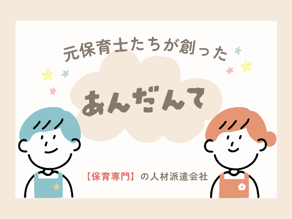 対象となる方 | 求める人物像 ☆保育専門のあんだんてでは、保育士と幼稚 園免許を持つコーディネータがあなたの担当 になり、面接から就業後のフォローまでずっ と親身になって対応させて頂いております。 仕事の悩みやご不満も迅速に対応致します。 ☆ご自宅近くでの出張面接やオンラインでの登録・面接も可能♪まずはどんなお仕事がしたいかご相談いただくだけでも大丈夫! ☆保育経験のない方にはペーパー保育士研修実施!あんだんてで勤務して頂ける方は研修費も無料です♪ 「ペーパー保育士研修」あんだんての登録商標です。 ☆保育士試験対策講座実施中 応募資格 保育士資格をお持ちの方 必要な経験等 ー 必要な資格 保育士資格 |
