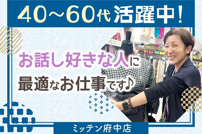 職種/仕事内容 | 仕事内容 ~・~・~・~・~・~・~・~・~・~・ きものに囲まれながら 会話を楽しむお仕事です⭐ ~・~・~・~・~・~・~・~・~・~・ お客様とおしゃべりしながら、 季節や⾊柄を楽しむ。 ⽇常に少し特別な時間を届けるお仕事です。 きものの知識がなくても⼤丈夫。 【話すのが好き】【⼈の笑顔がうれしい】 そんな気持ちがあれば、 ⾃然と接客のコツが⾝につきます。 パートでもフルタイム勤務が可能。 安定収⼊を得ながら、 ⾃分らしく働ける環境です。 ▼具体的なお仕事の詳細 ―――――――――――――――――――― ・きものや和雑貨の接客販売 ・お客様のご要望ヒアリング ・コーディネート提案、ご試着サポート ・お会計やラッピング対応 ・商品の陳列や店内清掃 “売る“ よりも “話す“ を⼤切にしています。 会話の中から、お客様に似合う⼀枚を ⼀緒に探す接客スタイルです。 ✅ 未経験でも安心のサポート体制 ―――――――――――――――――――― 販売未経験の⽅も、 ⼊社後の研修で⼀から学べます。 「たたみ⽅」「⾊合わせ」「接客の流れ」 などを実践形式でレクチャー。 店舗配属後も先輩が⼀緒に フォローしてくれるので、 初めてでも不安はありません。 ⾃分のペースで少しずつ成⻑できます。 \働くスタッフのリアルな声✨/ ―――――――――――――――――――― ・⼦育て後の再スタートで、 新しい楽しみを発⾒しました(40代) ・コンビニ勤務から転職︕ 和の接客が新鮮です(30代) ・ブランクありでも、 研修でしっかり学べます(50代) ・お客様と会話を重ねるうちに、 きものが好きになりました(50代) ⭐ こんな方におすすめ ―――――――――――――――――――― ◆ 未経験から接客に挑戦したい ◆ パートでも安定収⼊を得たい ◆ ブランク明けで社会復帰を考えている ◆ 和の雰囲気が好き・お話しするのが好き ⼈と接することが好きであれば⼤丈夫! 年齢や経歴に関係なく、 あなたらしい接客ができます。 |