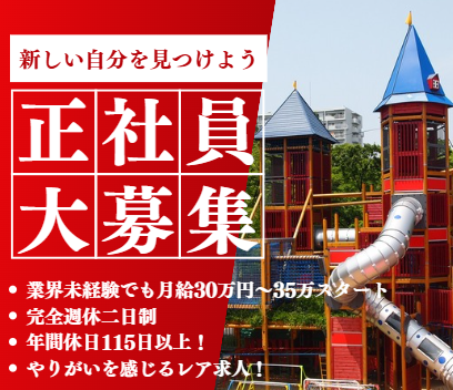 対象となる方 | 求めている人材 【必須条件】 ◇営業経験2年以上の方 【こんな方にピッタリ】 ◇社会貢献性のある仕事に挑戦したい方 ◇“お客様とつくる提案型営業”に興味がある方 ◇チームで連携して進めるスタイルが好きな方 ◇空間づくりや子どもに関心がある方 |