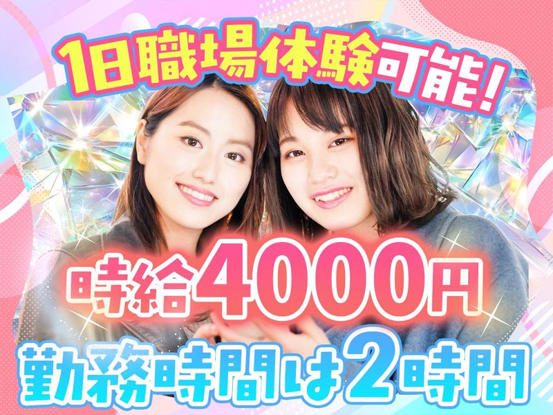 給与 | 時給4,000円以上 給与詳細 基本給:時給 4000円 〜 ◆1日体験勤務の場合:¥8000(2時間) *週2日~OK *1日2時間~OK *短時間勤務OK *副業OK・WワークOK *20時以降も働ける方優遇! 【給与例】 給与例 ※月4週換算で計算した目安金額です。 ◆週2日/1日2時間勤務の場合 (4,000円×2時間×8日勤務) ⇒ 月収6万4,000円 ◆週2日/1日4時間勤務の場合 (4,000円×4時間×8日勤務) ⇒月収12万8,000円 |